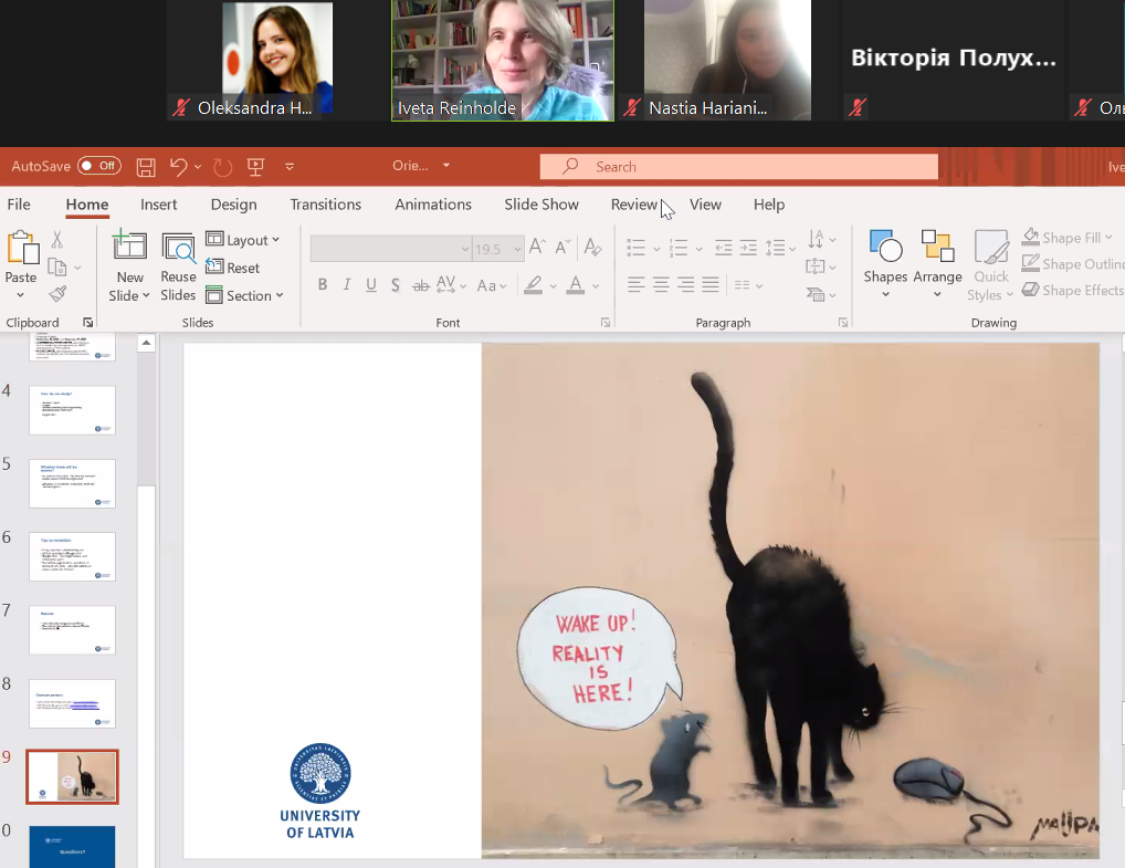 21 вересня навчання розпочалося на платформі Zoom вступною лекцією керівника кафедри політології, професора Івети Рейнхольде. Студенти мали можливість ознайомитись із майбутніми програмами та форматом навчальних занять, задати питання та поспілкуватися між собою.