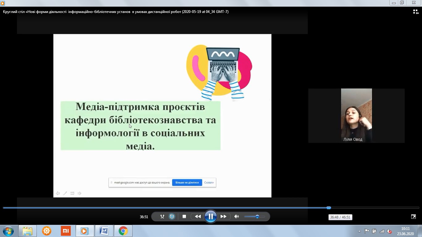 19 травня 2020 року кафедра бібліотекознавства та інформології в межах тижня науки провела онлайн круглий стіл з випускниками, що працюють за фахом.