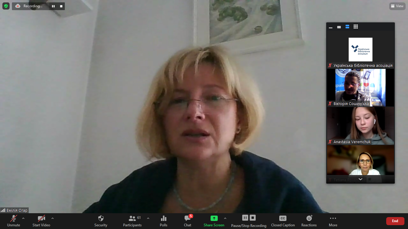 Члени оргкомітету: Поліщук Т.І., старший викладач кафедри бібліотекознавства та інформології Київського університету імені Бориса Грінченка; Сошинська В.Є., доцент кафедри бібліотекознавства та інформології Київського університету імені Бориса Грінченка, кандидат наук із соціальних комунікацій; Сошинська Я.Є., доцент Національного технічного університету України «Київський політехнічний інститут імені Ігоря Сікорського», виконавчий директор ВГО Українська бібліотечна асоціація, науковий співробітник Державної науково-педагогічної бібліотеки ім. В.О. Сухомлинського, кандидат історичних наук, доцент.