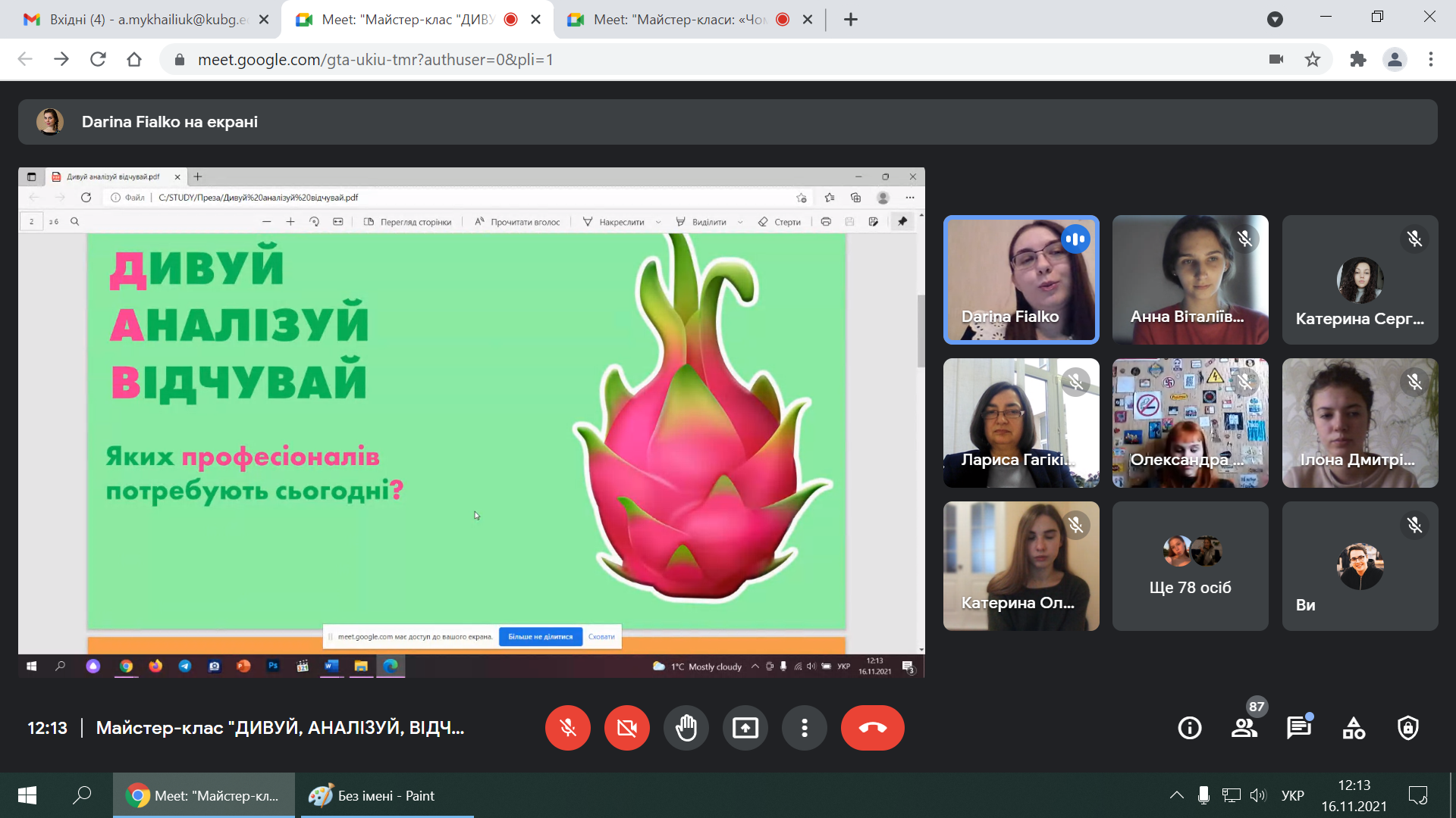 Тема заходу «Дивуй, аналізуй, відчувай: яких професіоналів потребують сьогодні?» перегукується з актуальним питанням майбутніх фахівців. Дарина Фіалко поділилася власною історією кар’єрного зростання, а саме – розповіла про шлях від редакторки до проєкт-менеджерки телеканалу «Україна». Розповідь надзвичайно вразила учасників онлайн-заходу. На окрему увагу заслуговував багаж досвіду, вмінь та старань професіонала, який надзвичайно змотивував амбітних студентів. Проєкт-менеджерка дала низку чітких порад та настанов щодо праці в медійній сфері. За словами фахівчині, «справжній професіонал має вчитися розвивати в собі вміння продукувати ідеї та бути генератором думок, проєктів і креативу. Ніколи не варто сприймати критику як образу, адже це породжує зневіру».
