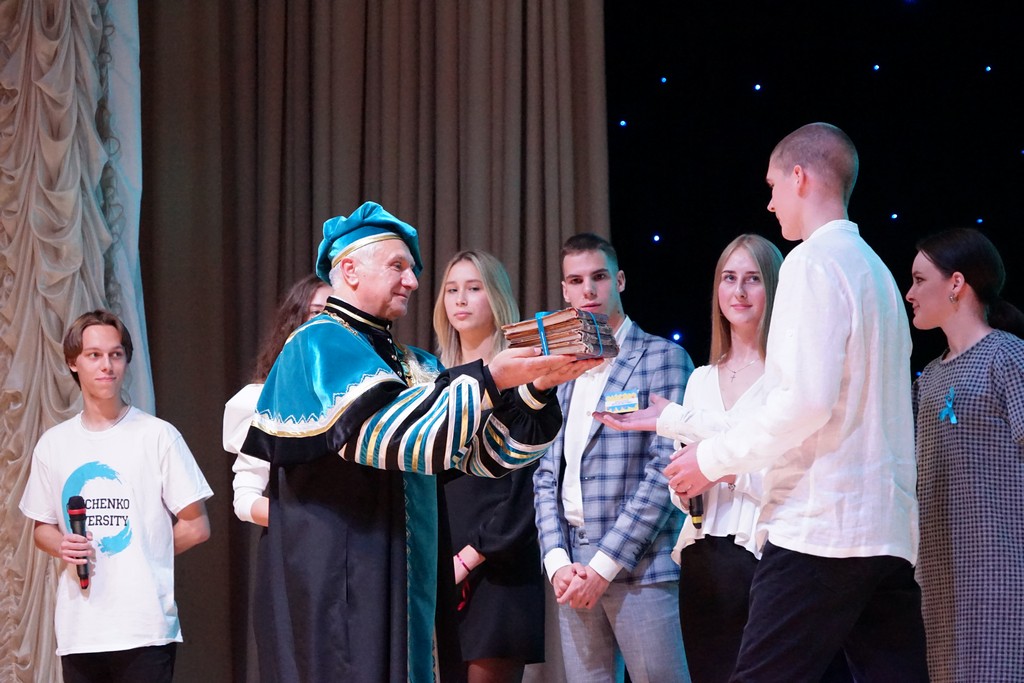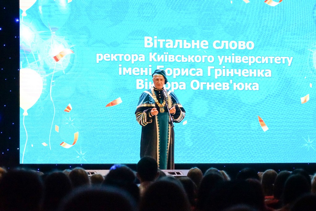 Цьогоріч урочистості розпочалися з вшанування пам’яті загиблих грінченківців. З вітальним словом до першокурсників та гостей звернулися Ректор Університету Грінченка Віктор Огнев‘юк та декан Факультету журналістики Галина Горбенко. Віктор Олександрович наголосив на важливості для кожного з нас брати відповідальність за свої дії, за свою громаду, за свою країну та побажав перемоги України на усіх фронтах.