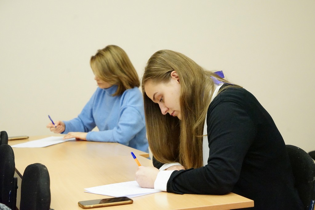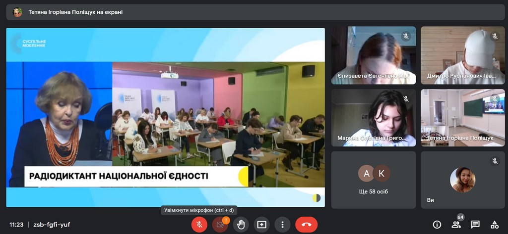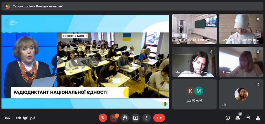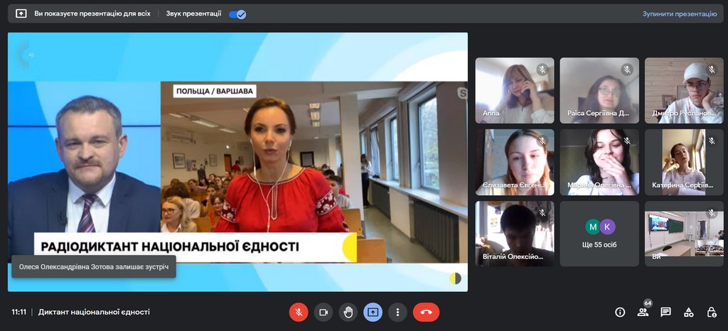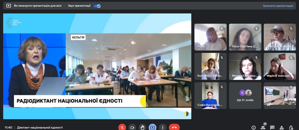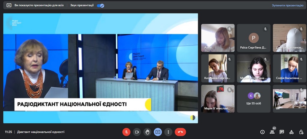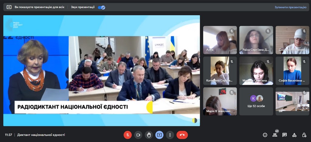 Технічні можливості сьогодні зробили можливість викладачам та студентам з різних куточків України писати диктант разом. Система асинхронного навчання дозволила приєднатися через Google meet студентам-першокурсникам, а викладацькому складу, що перебував в корпусі №1 писати диктант спільно.