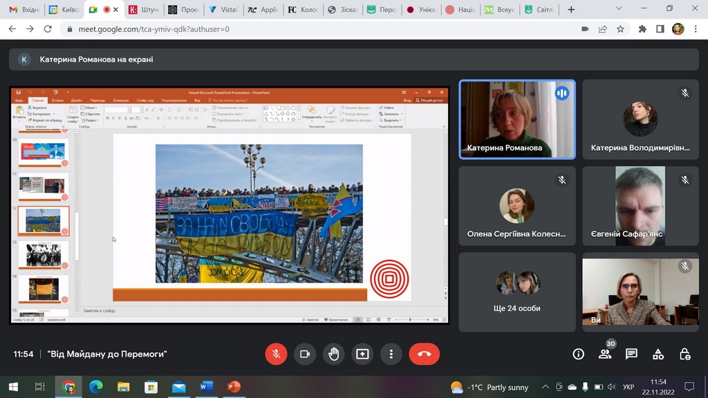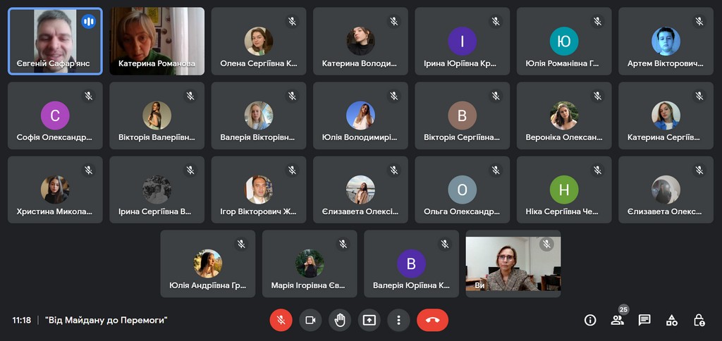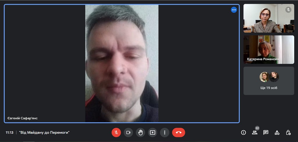 22 листопада 2022 року студенти першого курсу Факультету журналістики зустрілися з учасниками Євромайдану та Революції Гідності: Євгеном Сафар’янсом, кандидатом історичних наук, заступником директора КЗ «Музей Вінниці» та Катериною Романовою, очільницею відділу науково-дослідної роботи Національного меморіального комплексу Героїв Небесної сотні – Музей Революції Гідності.