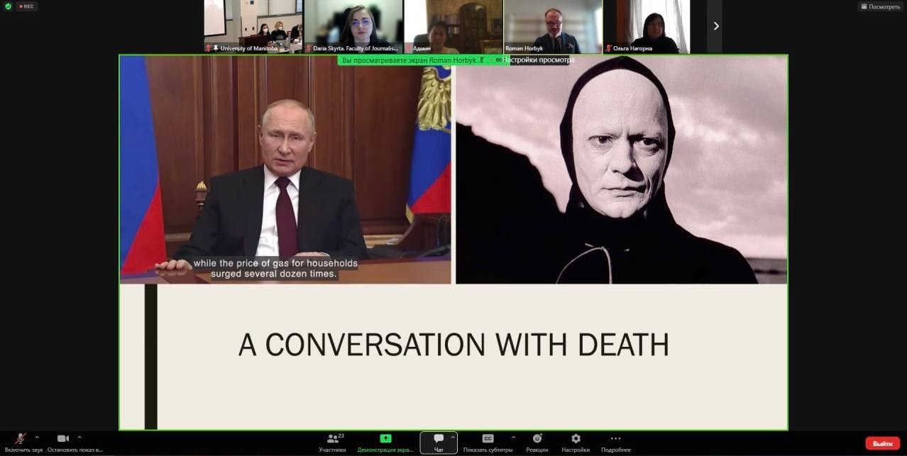 Міжнародна мультидисциплінарна конференція «MAIN CHALLENGES AND ISSUES OF UNIVERSITY EDUCATION IN WAR CONDITIONS: UKRAINE – 2022», організована Факультетом мистецтв Університету Манітоби (Вінніпег, Канада), зібрала більше п‘ятдесяти спікерів з різних куточків України та світу. Одним з основних питань було - Які виклики постали перед вищою освітою України під час війни, і як їх вирішувати? Панельні дискусії охопили медичний, філологічний, журналістський, педагогічний та мистецький напрямки. Серед учасників конференції були присутні викладачі та студенти Факультету журналістики Університету Грінченка: кандидат педагогічних наук, доцент кафедри журналістики та нових медіа Аліна Лісневська, студентка 4 курсу Дар'я Скирта, а співорганізаторкою виступила – кандидат філологічних наук, доцент кафедри журналістики та нових медіа Ольга Хамедова.