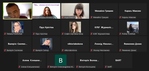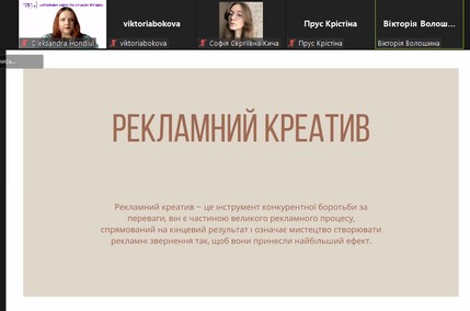 Продовжили роботу конференції 3 круглі столи за участі фахівців-практиків: «Рекламний та PR-креатив у промоції сучасних брендів» (модератори: доц. Маргарита Нетреба, доц. кафедри реклами та зв’язків з громадськістю Факультету журналістики КУБГ, кандидат наук із соціальних комунікацій; проф. Леонід Новохатько, завідувач кафедри реклами та зв’язків з громадськістю Факультету журналістики КУБГ, докт. іст. наук, заслужений діяч науки і техніки України); «Фахові запити сучасної видавничої галузі у період воєнного стану» (модератор – Олена Осмоловська, доц. кафедри медіапродюсування та видавничої справи Факультету журналістики КУБГ, канд. іст. наук); «Журналістика воєнного стану: креатив та суспільна відповідальність» (модератори: Ганна Безулік, доц. кафедри журналістики та нових медіа Факультету журналістики КУБГ, заслужений журналіст України; доц. Яна Фруктова, доц. кафедри журналістики та нових медіа Факультету журналістики КУБГ, канд. пед. наук).