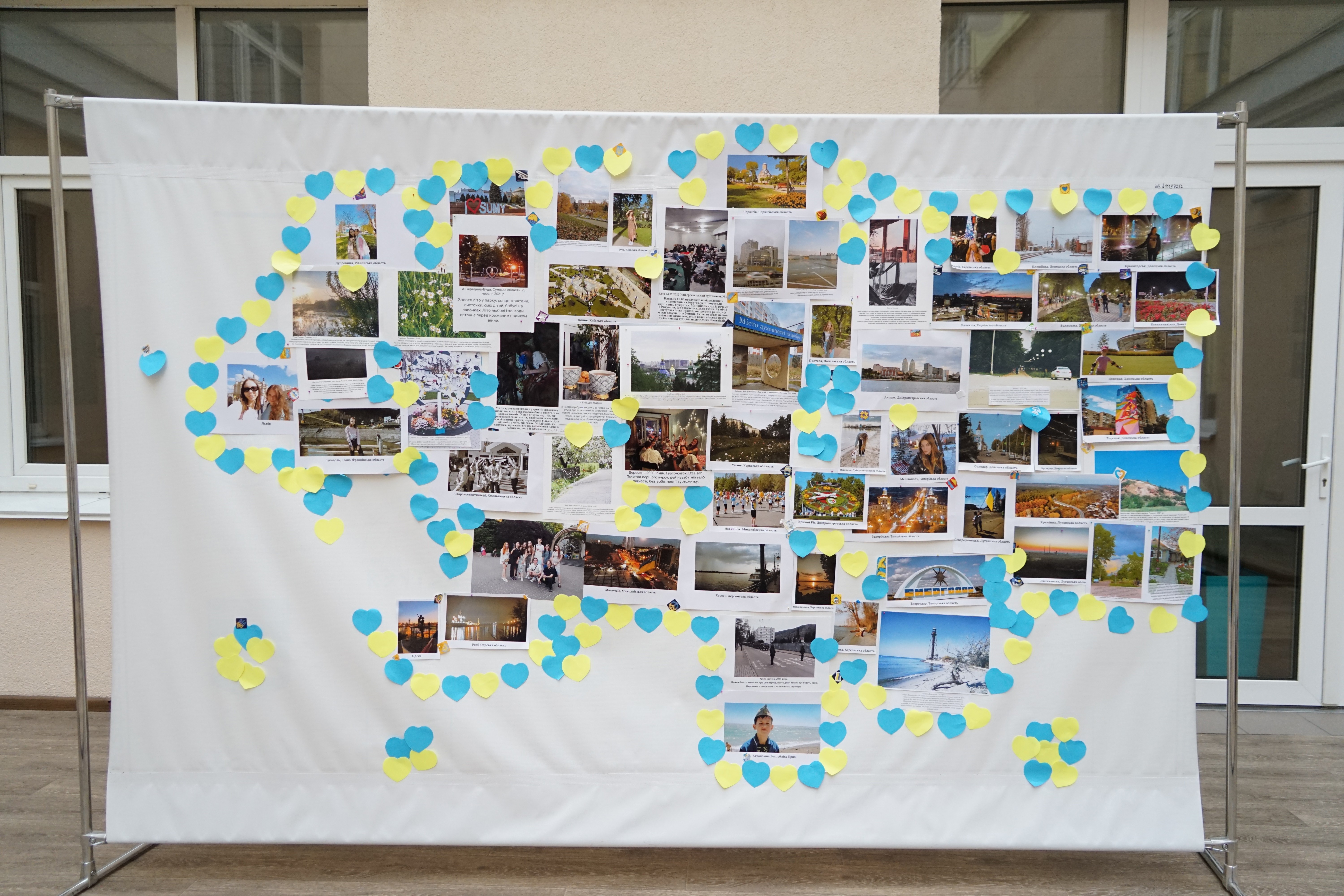 Червоною ниткою виставки є власні спогади студентів про місця, які ще не так давно були сповнені життям та радістю, місця щасливих людей. Власні, дорогі серцю спогади про свої домівки, про щасливе минуле до війни студенти продемонстрували через експозицію однойменної фотовиставки оформлену у вигляді карти України.
