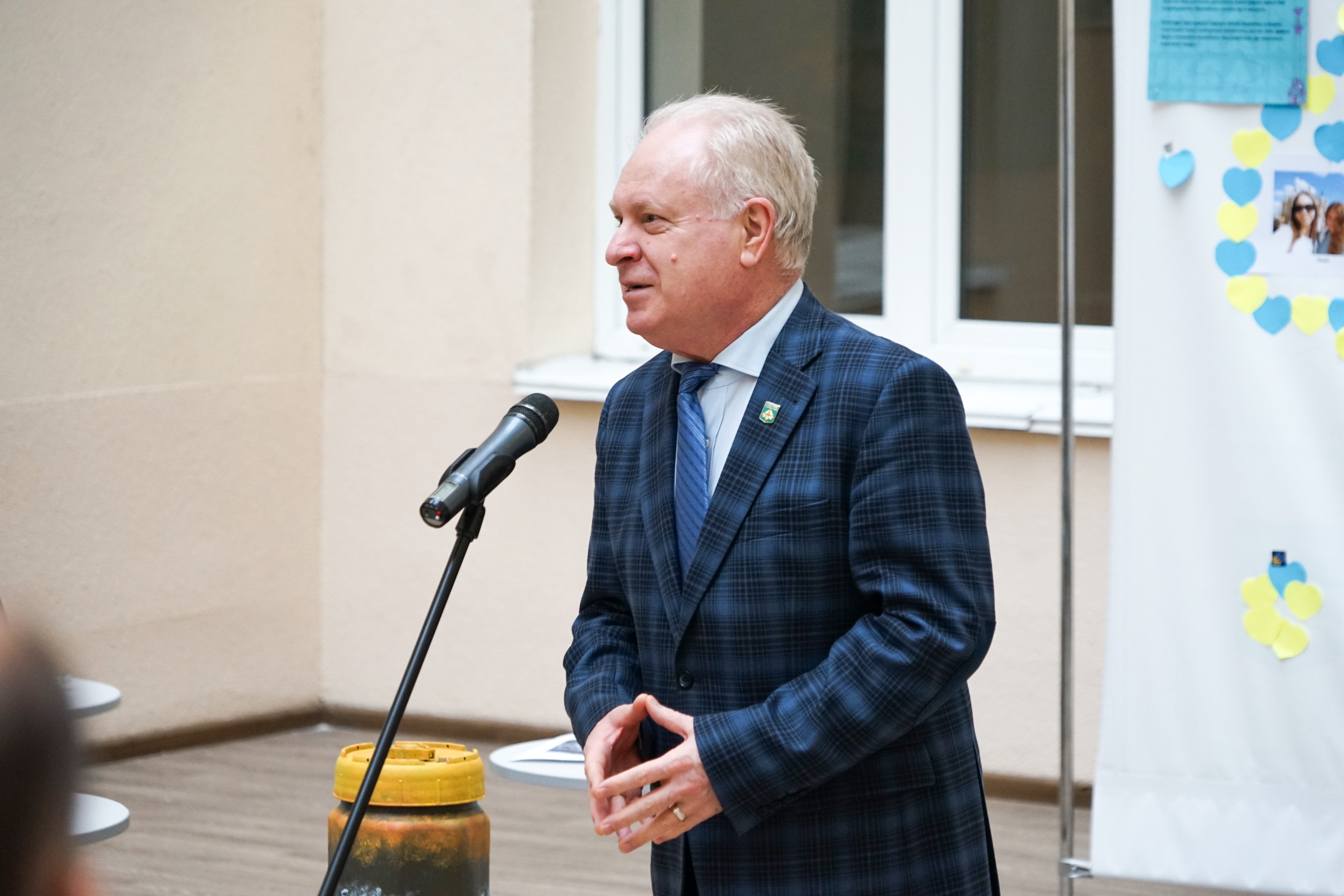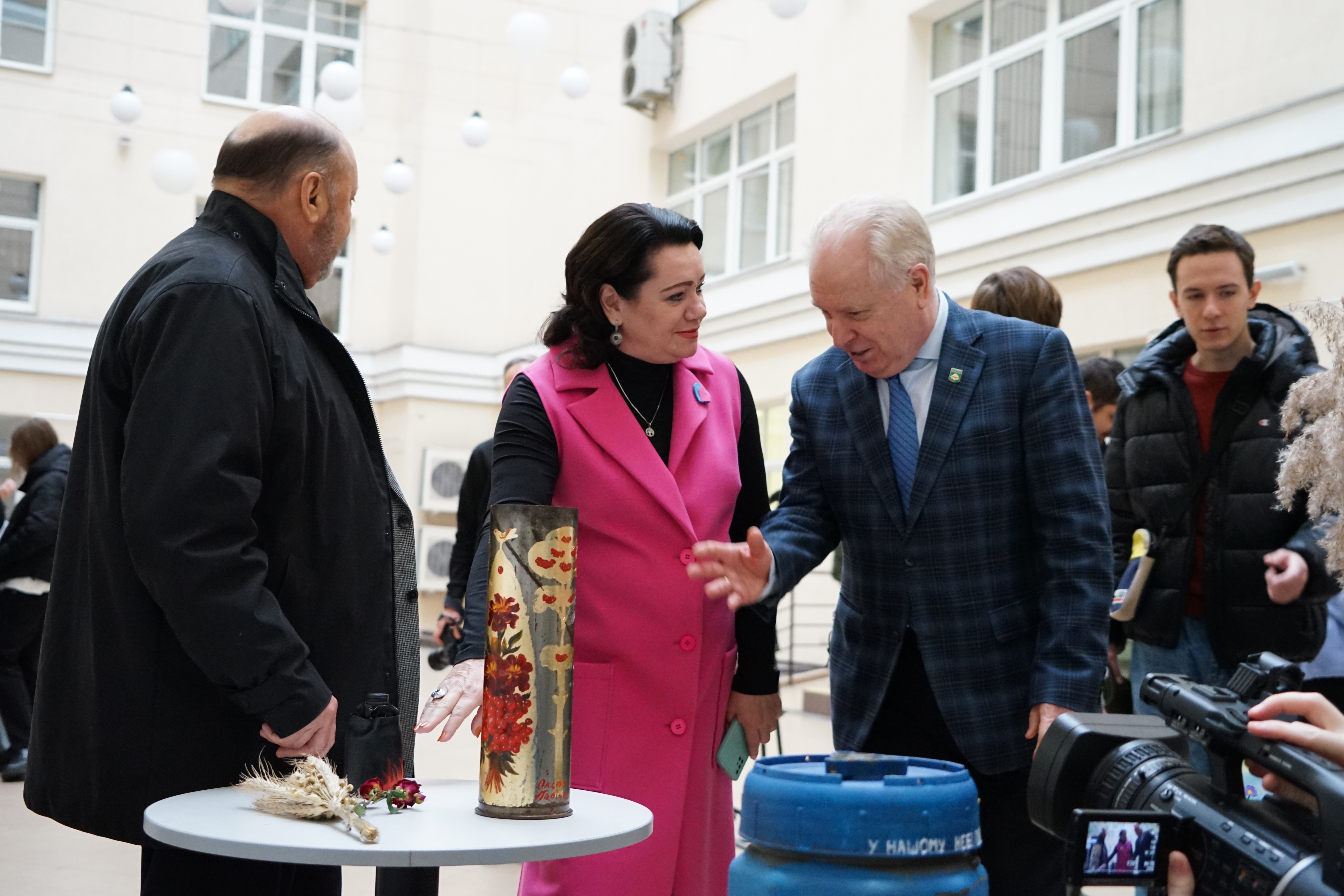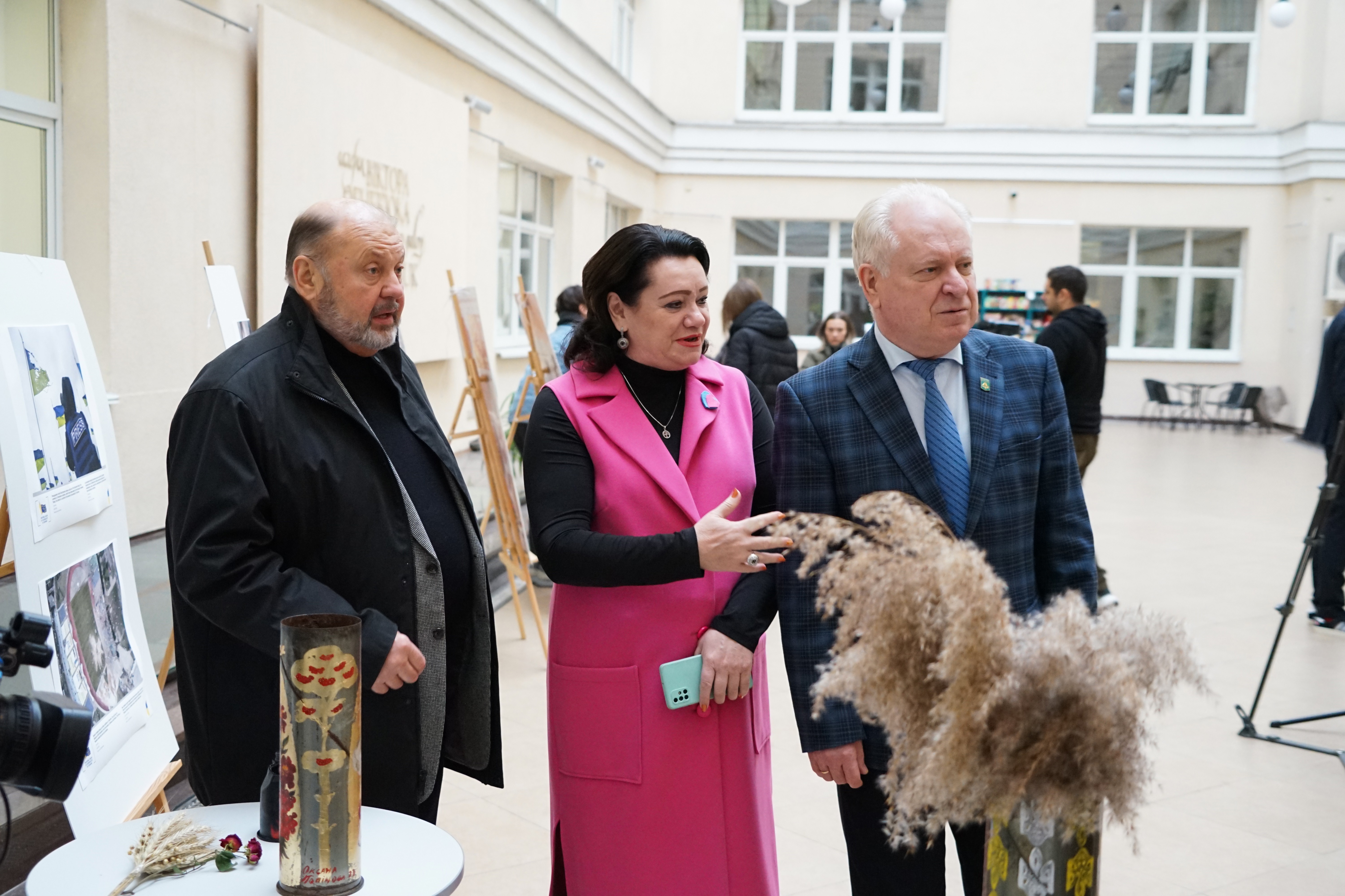 З вітальною промовою до студентів звернувся проректор Київського університету імені Бориса Грінченка Олександр Петрович Турунцев. Він зазначив, що такі ініціативи важливі, а виставка, презентована сьогодні дуже символічна. «Це зброя перетворена в мистецтво», - зауважив Олександр Петрович.