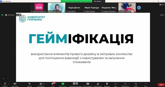Розпочала програму Олександра Гондюл, викладачка кафедри міжнародної журналістики з воркшопом на тему: «Медіаграмотність в епоху глобальних змін: гейміфікація як інструмент сучасного викладача».
