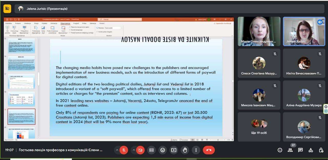Гостьова лекція професора Єлени Юришич «Сучасна журналістика: приклад Хорватії»