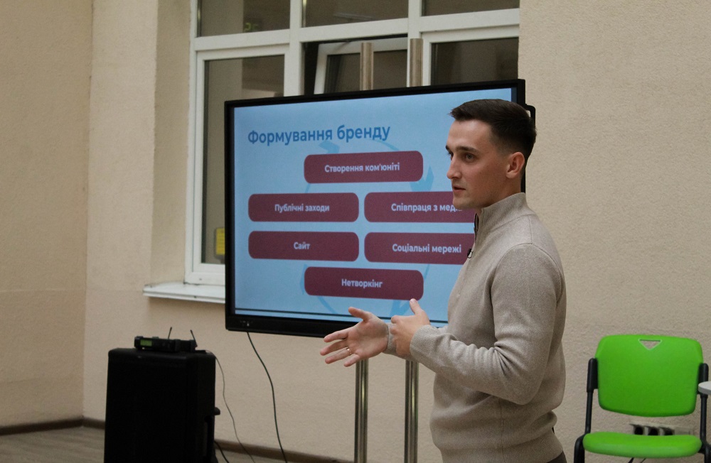 Першим спікером тренінгів став Андрій Сінько – успішний PR-фахівець та викладач кафедри реклами та зв’язків з громадськістю. У межах лекції на тему «Говорити не можна соромитись: створення бренду громадської організації» Андрій поділився ґрунтовними порадами й цікавими кейсами в сфері PR-комунікацій, наголосив на важливості спілкування зі своєю аудиторією та медіа. Також Андрій радо відповідав на складні й подекуди каверзні питання учасників, що оживило спілкування.