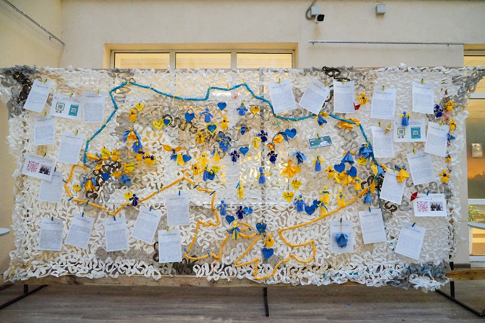 Цьогорічний проєкт ми присвячуємо захисту тих, хто оберігає нас і бореться за кожен метр рідної української землі – нашим Героям. Мрії про Перемогу і мирну Україну студенти демонструють через експозицію «Місця щасливих людей: захист для Героїв!» – велику захисну сітку, яку сплели під наставництвом, методиста Студентського офісу №1, представниці Благодійного фонду «Волонтери ЛАД» Юлії Поліщук.