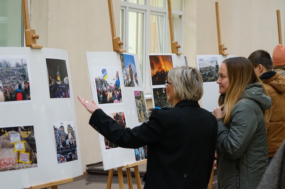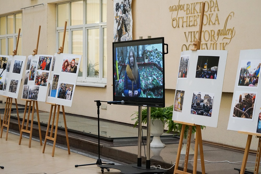 Гостям заходу було запропоновано до перегляду фільм "Дух Майдану" знятий студентами спільно з Астудією у далекому 2014-му. Це світлини зроблені співробітниками та студентами у період з кінця листопада 2013 до середини квітня 2014 року. Упорядником виставки став Роман Ратушний, старший викладач кафедри журналістики та нових медіа, член Міжнародної федерації фотомистецтва (FIAP) та Національної спілки фотохужодників України.