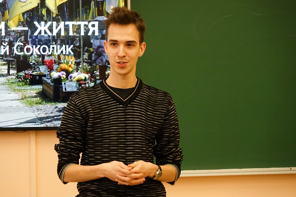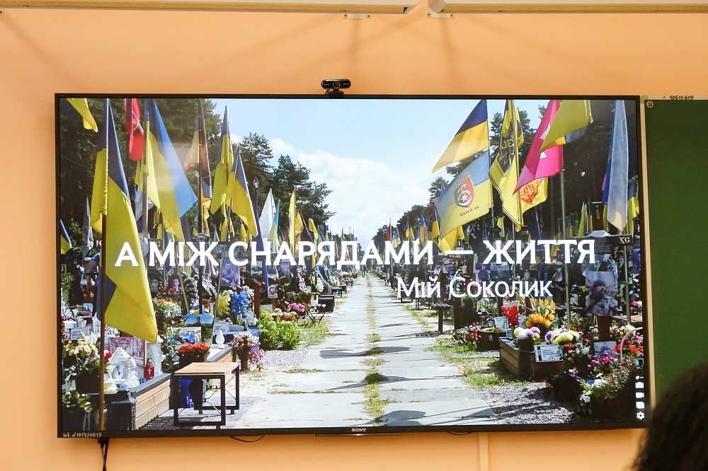 Документальний фільм «А між снарядами — життя. Мій Соколик» - це магістерський проєкт Скирти Дарії та Вигонного Дениса , керівником якого є професор Віктор Шпак. Захід проведено за сприяння деканату Факультету журналістики, зокрема заступника декана Поліщук Тетяни та завідувача кафедри Надії Фіголь.