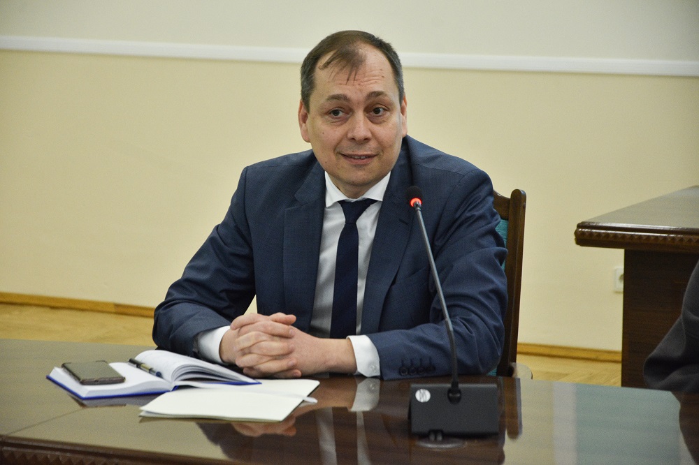 Після екскурсії відбулася лекція зі студентами та аспірантами Факультету журналістики, Факультету права та міжнародних відносин і представниками Міністерства. З вітальним словом виступив в.о. ректора, заслужений працівник освіти України Олександр Турунцев.
