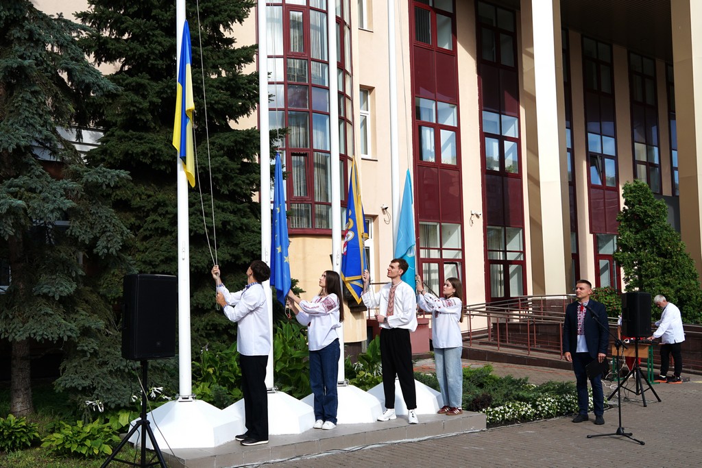 Викладачі, співробітники та студенти у вишиванках долучилися до підняття синьо-жовтого прапора. Зважаючи на тяжкі воєнні часи сьогодення нашої держави, усі присутні вшанували хвилиною мовчання загиблих героїв, окремо згадали студентів університету. З Днем прапора всіх присутніх привітав в.о. ректора, заслужений працівник освіти Олександр Турунцев, який висловив вдячність усім, хто боронить нашу країну, вшанував пам'ять полеглих грінченківців, нагадав про історичну значущість нашого прапора. На заході також сказав свою промову випускник нашого навчального закладу, офіцер ЗСУ Сергій, який наразі сміливо боронить нашу країну. Своїми словами він нагадав про важливість прапора та його новий символізм для України в часи війни.