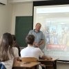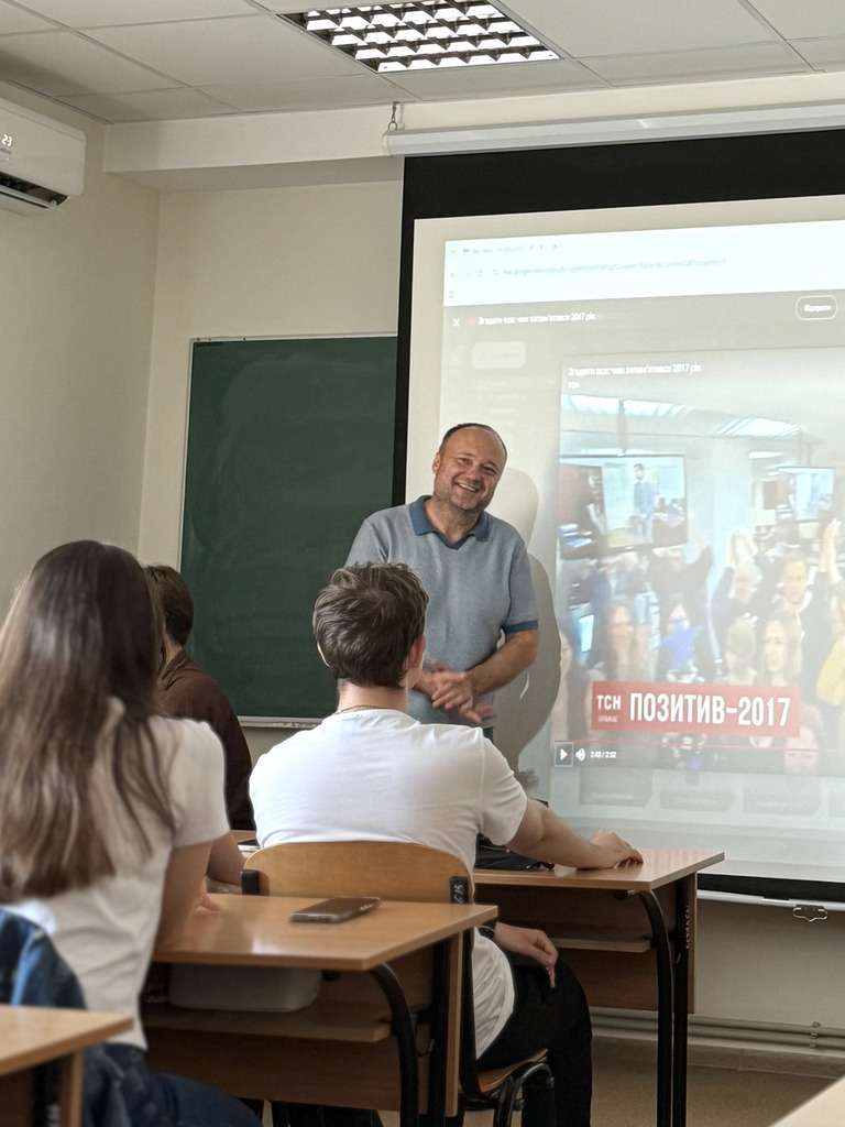 Пан Олександр поділився досвідом створення своїх сюжетів, розповів, як народжуються репортажі у складних умовах, коли довкола відбуваються бойові дії. Учасники зустрічі переглянули його матеріали, відзняті на Донеччині сюжети, коли вибухи лунали буквально зовсім поруч. Журналіст пояснив, що в таких ситуаціях надзвичайно важливо залишатися зібраним і зосередженим, адже від витримки журналіста залежить не лише якість знятого матеріалу, а й безпека всієї команди, яка працює поряд.