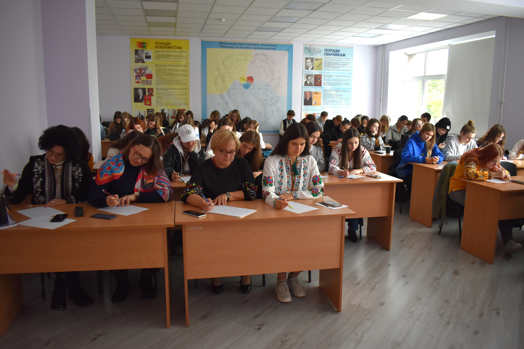 Родзинкою зустрічі стало спільне написання 26 Всеукраїнського радіодиктанту, який читала Народна артистка України Наталя Сумська. Представники ректорату, декани та студенти спільно писали диктант, написаний письменницею Євгенією Кузнєцовою з промовистою назвою -"Треба жити!". Значна частина студентів та викладачів на чолі з деканом Факультету журналістики - Надією Фіголь, долучилася до написання диктанту в аудиторіях.