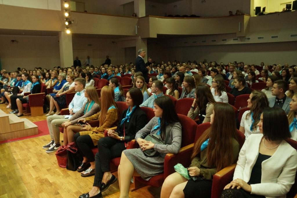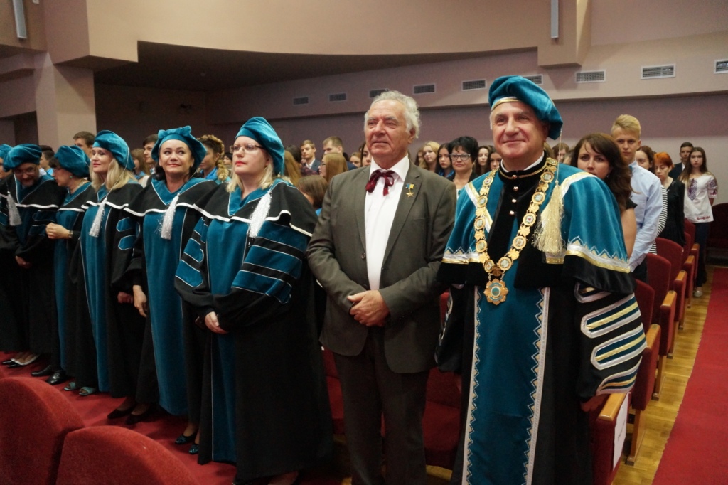 У концертній залі навчального корпусу по вул. Тимошенка, 13-Б зібралися першокурсники, викладачі, Вчена рада Університету на чолі з ректором Віктором Олександровичем Огнев’юком, почесні гості. Під звуки Гімну України церемонію свята оголосили відкритою.