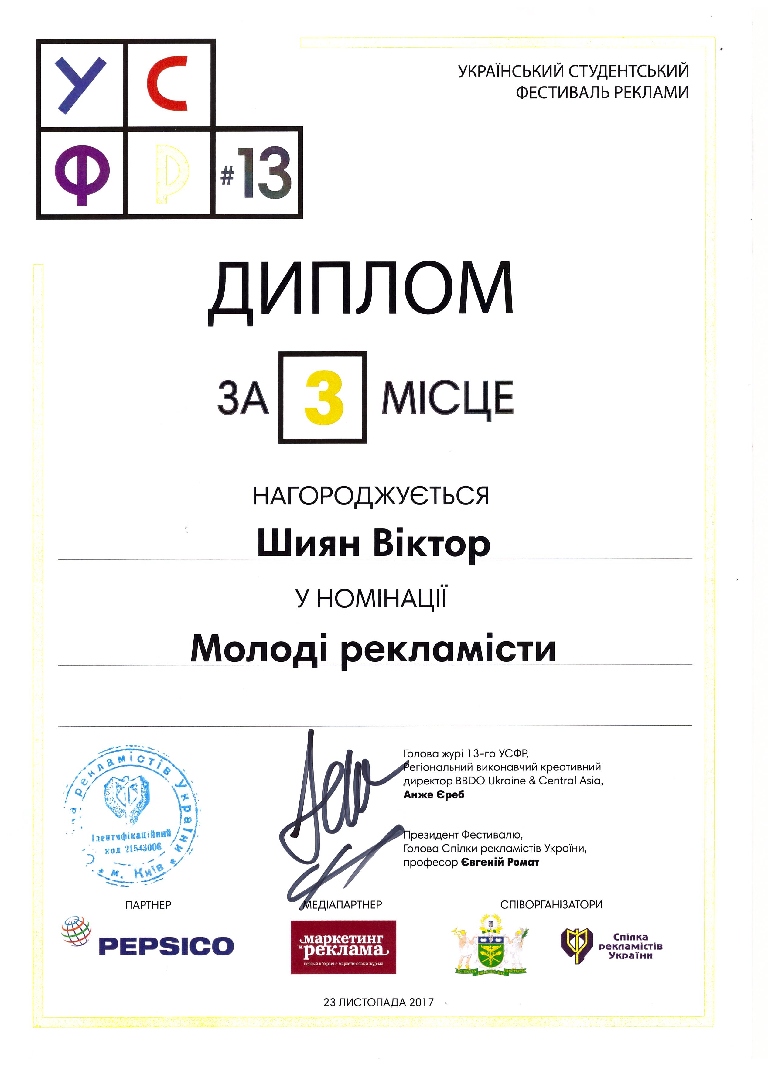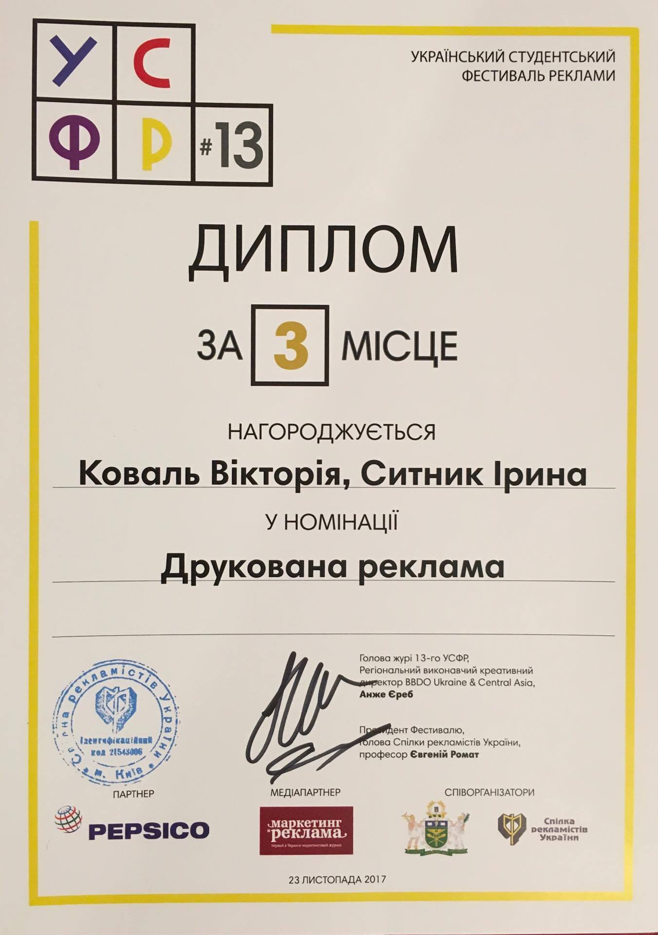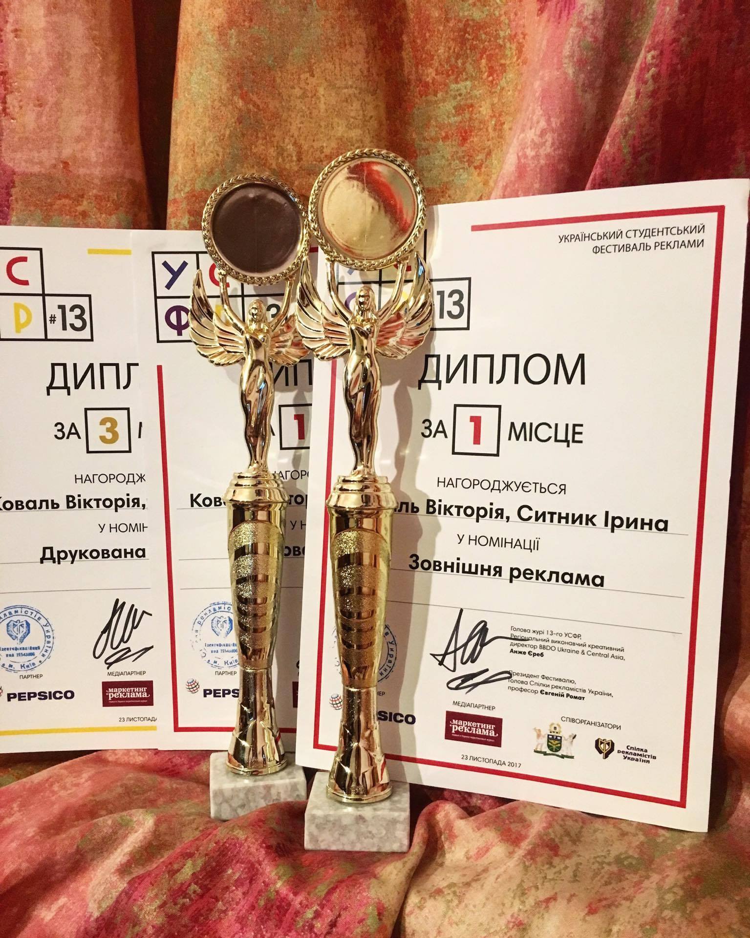 I місце у номінації «Зовнішня реклама», I та III місця у «Друкованій рекламі», а старший викладач кафедри Віктор Шиян – III місце у номінації «Молоді рекламісти».