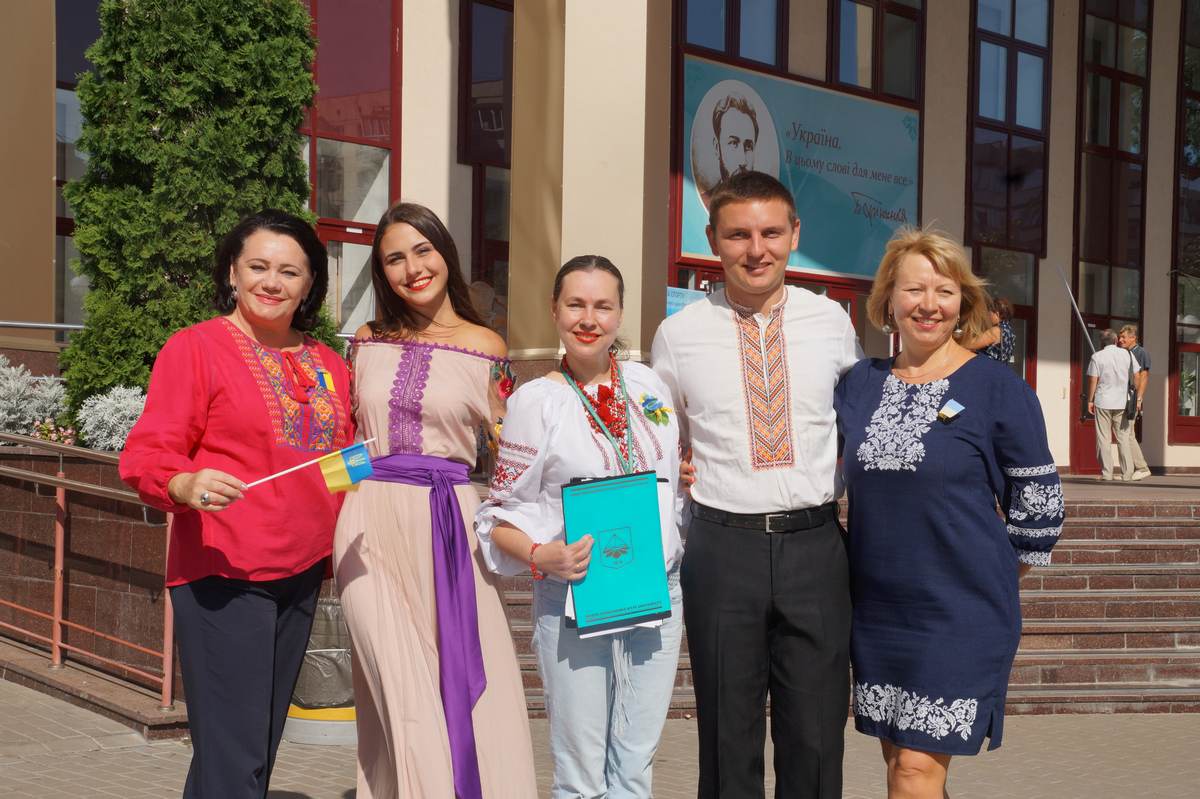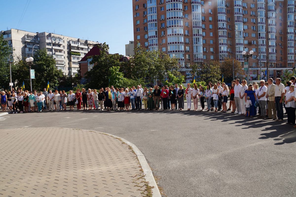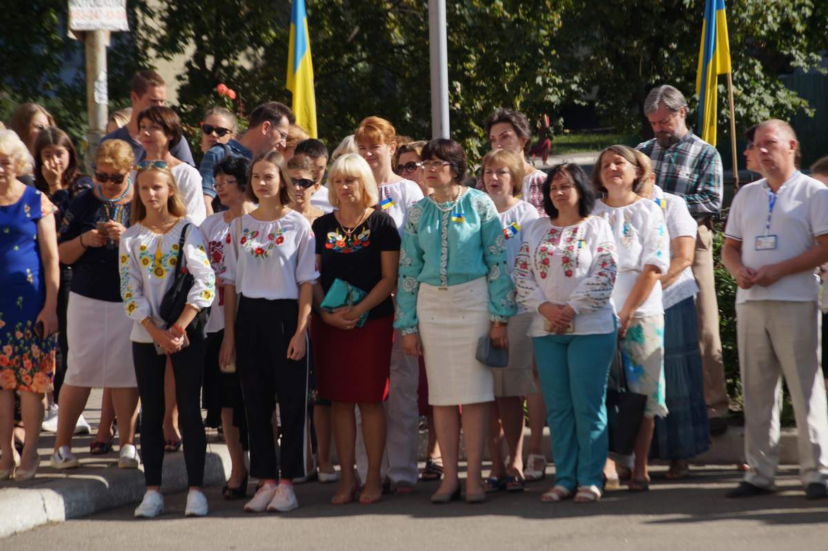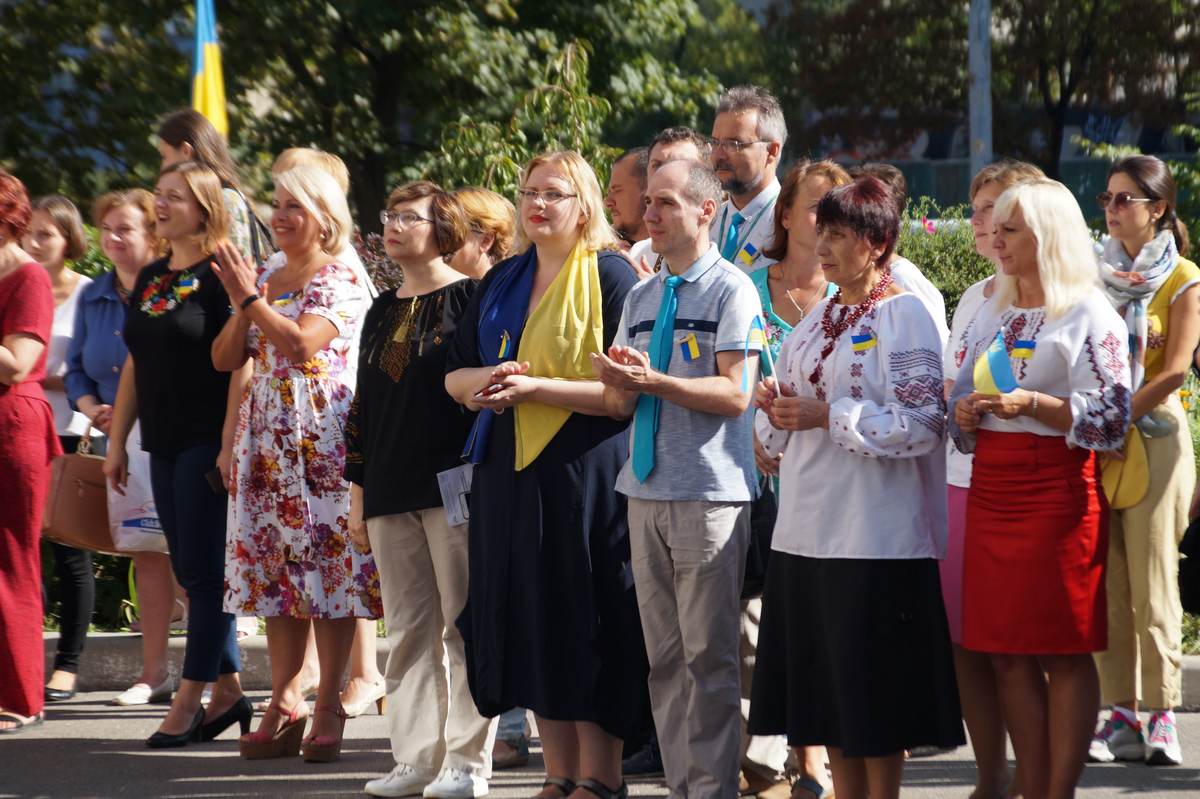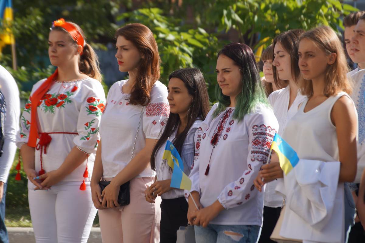 О 10 годині грінченківці у вишиванках та зі святковим настроєм зібрались перед навчальним корпусом №1. Перед початком заходу присутні отримали символ свята – прапорець із колоссям пшениці.