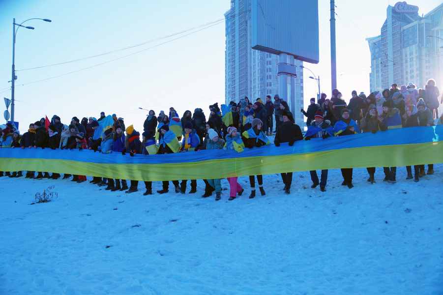 У всіх охочих була можливість розфарбувати обличчя в кольори державного прапора. Учасники акції співали Державний Гімн та з вигуками «У День Злуки –тримаймося за руки» і «Одна-єдина – Соборна Україна» з’єднали «живим ланцюгом» два береги Дніпра.