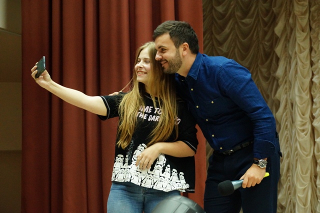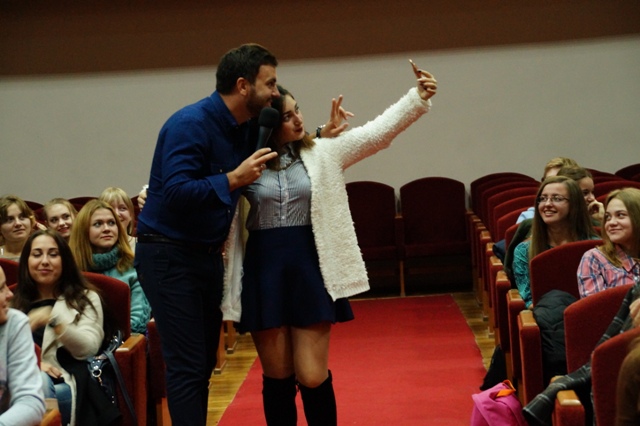 Зустріч пройшла в дружній, теплій атмосфері. Григорій поділився досвідом професійного становлення, розповів майбутнім журналістам та піарникам про специфіку роботи ведучого, цікаві ситуації зі студентського життя. Студенти були надзвичайно захоплені гостем, засипали запитаннями та довго не хотіли відпускати.