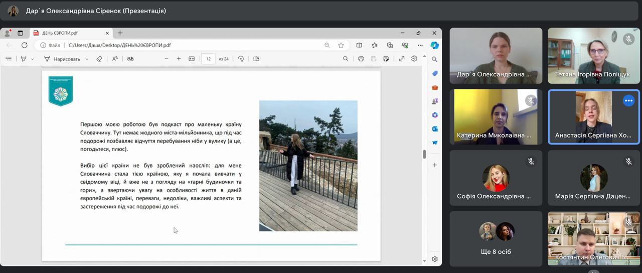 9 травня 2024 року в Україні відзначають День Європи. Це свято Україна вже вдруге відзначає на державному рівні, а на Факультеті журналістики відбувся цікавий тематичний захід. Під час зустрічі зі студентками 4 курсу ОП "Журналістики" Катериною Цап, Дарʼєю Сіренок та Анастасією Хоменко був представлений авторський проєкт — туристичний подкаст "Пульс націй", розроблений у співпраці зі студентським інтернет-радіо "Радіо BG". Гості зустрічі, студенти 2 курсу ОП "Реклама і зв'язки з громадськістю", дізналися історію створення проєкту, зазирнули за завісу роботи на радіо, а також послухали про особливість та важливість висвітлювання туристичних подорожей до країн Європи.