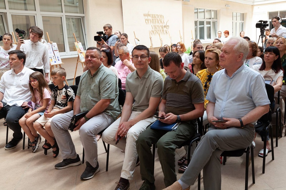 Анатолій Анатоліч (ведучий, автор блогу на ютуб-каналі) розповів як його діти долучилися до акції та залюбки малювали тата на роботі. Перший день після звільнення від окупації» та «Інтерв'ю з героєм ЗСУ» - так донечки Анатолія Анатоліча назвали свої роботи. Як і всі українські діти, вони з нетерпінням чекають переможного миру в нашій країні. Ще один ведучий, Анатолій Ковальський, відвідав виставку разом зі своїми дітьми. Творча акція дитячого малюнку розпочалася у травні цього року за ініціативи Національної спілки журналістів України. Діти з різних куточків нашої держави надсилали поштою малюнки до Київського Центру журналістської солідарності, що відкрився на початку повномасштабного вторгнення. А ось родина телеведучого Андрія Ковальського у повному складі відвідала такий центр та першою принесла малюнки. «Журналісти - важливі», так назвали діти свої роботи, ознайомившись із діяльністю Центру солідарності. Запрошуємо на сцену пана Андрія з дружиною Тетяною та їх діточок -8-річного Назара та 6-річну Полінку.