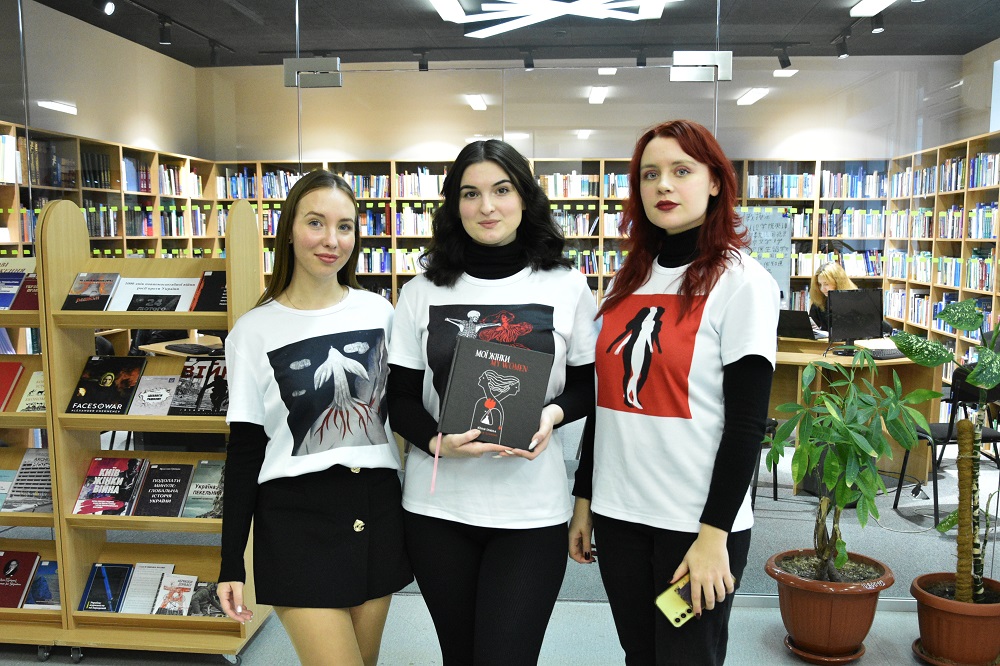 3 грудня 2024 року в межах акції 16 днів проти насильства в стінах Бібліотеки Університету Грінченка відбулося читання книги “Мої жінки”. В ній, авторка Юлія Ілюхіна, зібрала історій жінок після повномаштабного вторгнення на основі власного досвіду, розповідей друзів, знайомих та незнайомих, хто поділився своїми почуттями.Читали історії студентки Факультету журналістики, Наталія Сидорук (ОП "Журналістика"), Марія Магнус та Вікторія Ємліна (ОП "Міжнародна журналістика"). Історії, які слухали студенти 1 курсу освітньої програми "Журналістика" вразили їх і біллю втрат, і бажанням помсти, і любов'ю до України, і тим, що варто обирати червоний колір помади чи нігтів, адже, червоне - то любов.