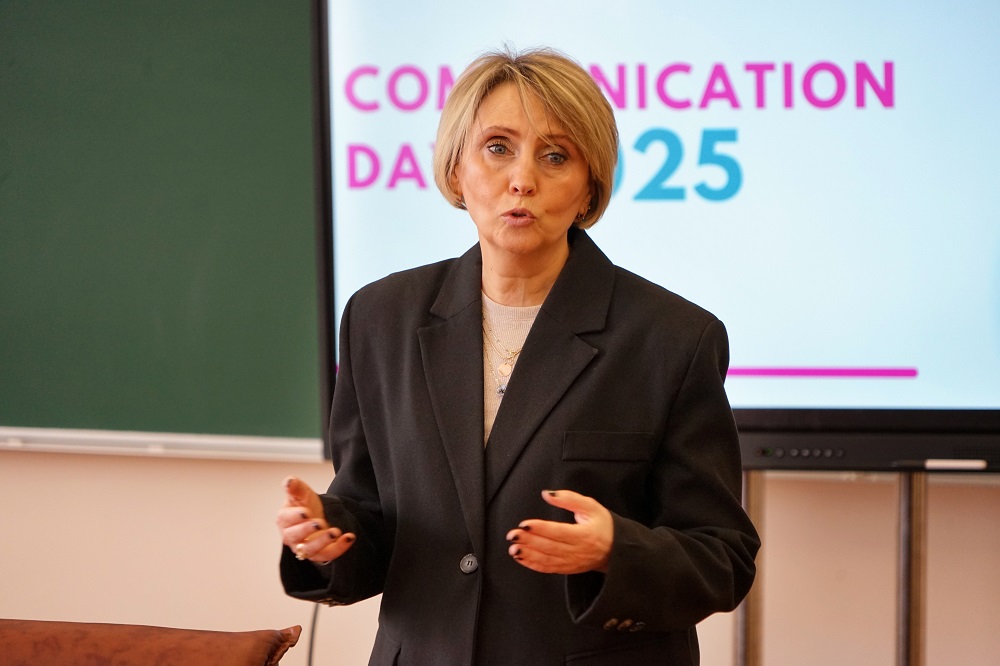 Communication Day 2025 розпочався з лекції-практикуму «Сила візуальних комунікацій: як дизайн говорить мовою бренду». Експертка з візуалізації, кандидат наук із соціальних комунікацій, доцент Маргарита Нетреба дала рекомендації з формування візуального повідомлення, айдентики та брендингу.