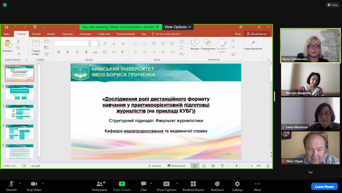 Захід модерувала Олена Осмоловська, доцент кафедри медіапродюсування та видавничої справи Факультету журналістики Киїського університету імені Бориса Грінченка, кандидат історичних наук.