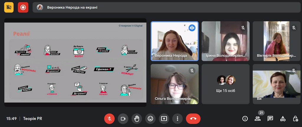 11 квітня 2023 року на завершення вивчення курсу «Теорія PR» студенти 3 курсу відвідали вебінар піарниці компанії DataArt Вероніки Нероди.