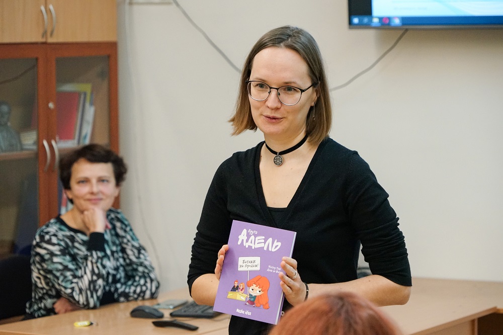 Зустріч проведено за ініціативою Олени Груздьової, голови циклової комісії з видавничої справи, української філології Фахового коледжу «Універсум», та Тетяни Єжижанської, старшого викладача кафедри медіапродюсування та видавничої справи. Дякуємо викладачам коледжу Перевертун Ользі й Ловейко Тетяні за сприяння в організації зустрічі.