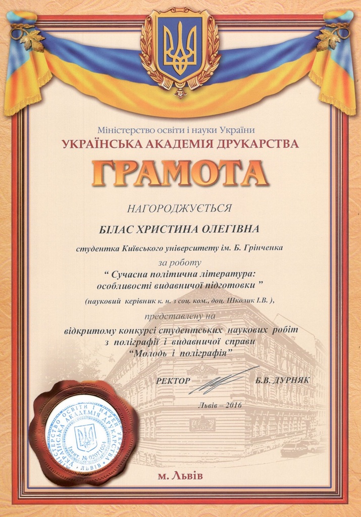 Студентки кафедри видавничої справи Інституту журналістики нагороджені за участь у відкритому конкурсі студентських наукових робіт «Молодь і поліграфія».
