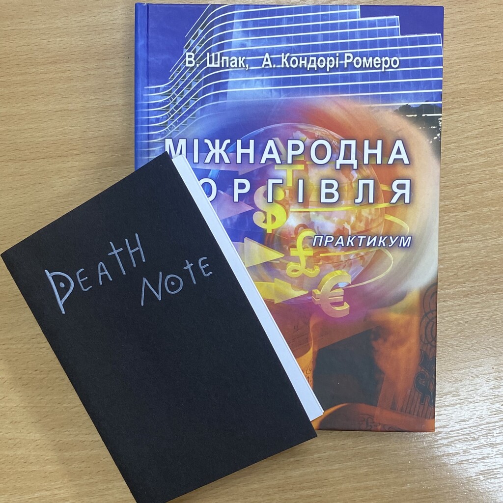 Третє місце отримала Ольга Пруднікова з блокнотом «Death Note». Дівчина зізналася, що найбільше задоволення отримала від процесу зшивання сторінок: «Ми постійно прив’язані до гаджетів, а тут довелося все робити руками. Це дуже розряджає». Її нагородою стала книга «Міжнародна торгівля», співавтором якої є Віктор Іванович.
