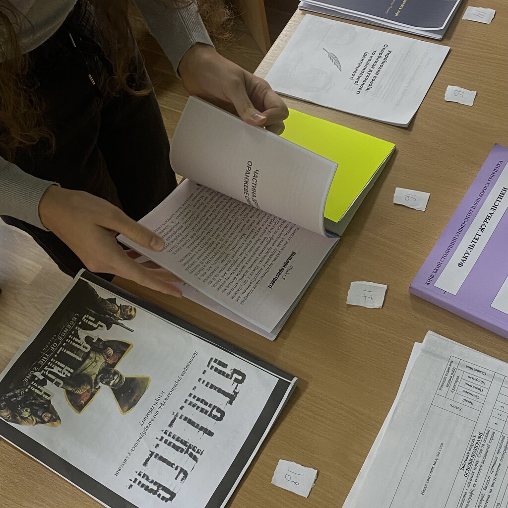 На столі розгорнулася справжня міні-виставка: рожеві блокноти зі стразами, темний «Death Note», брошури з поезією та навіть книги власного авторства студенток. Учасники по черзі розглядали роботи, жваво обговорювали деталі й голосували за найцікавіші. Атмосфера була легкою й захопливою, а вибір – непростим: розмаїття виробів змушувало вагатися між кількома фаворитами.