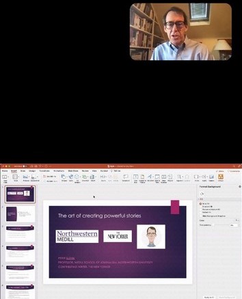 Спікер Пітер Cлевін (Peter Slevin) — професор Школи журналістики Меділл Північно-Західного університету та автор дописів для відомого видання The New Yorker. Розповідав про особливості створення журналістської історії та значення образу в ній. Понад 10 років гість працював репортером у The Washington Post та відвідав десятки країн світу та написати біографію Мішель Обами, першої леді США за каденції президента Барака Обами.
