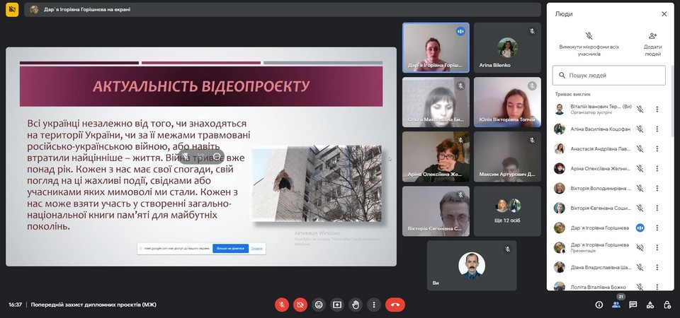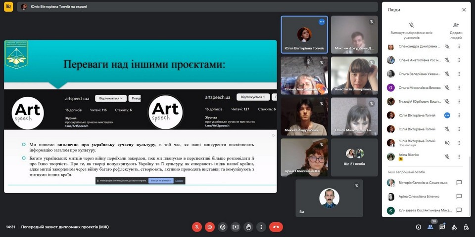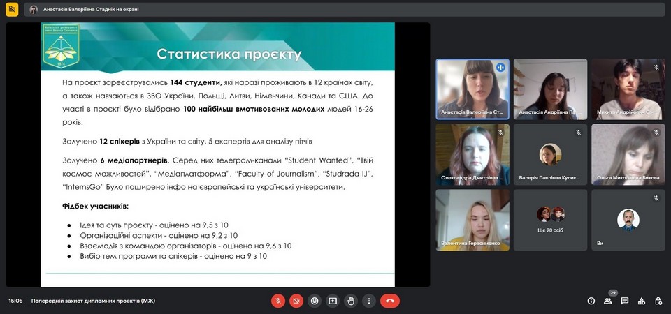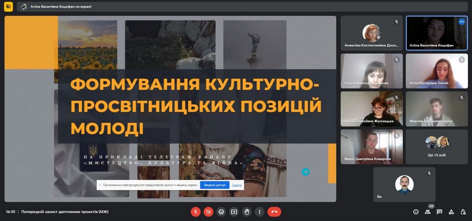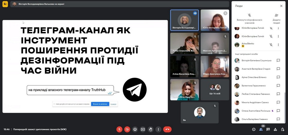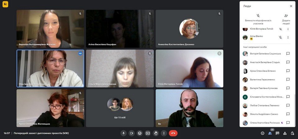 Участь у передзахисті взяли наукові керівники здобувачів завідувач кафедри Терещук В.І., професор Зражевська Н.І., доценти Бикова О.М., Досенко А.К., Карась М.А., Росінська О.А., викладач Гондюл О.Д.