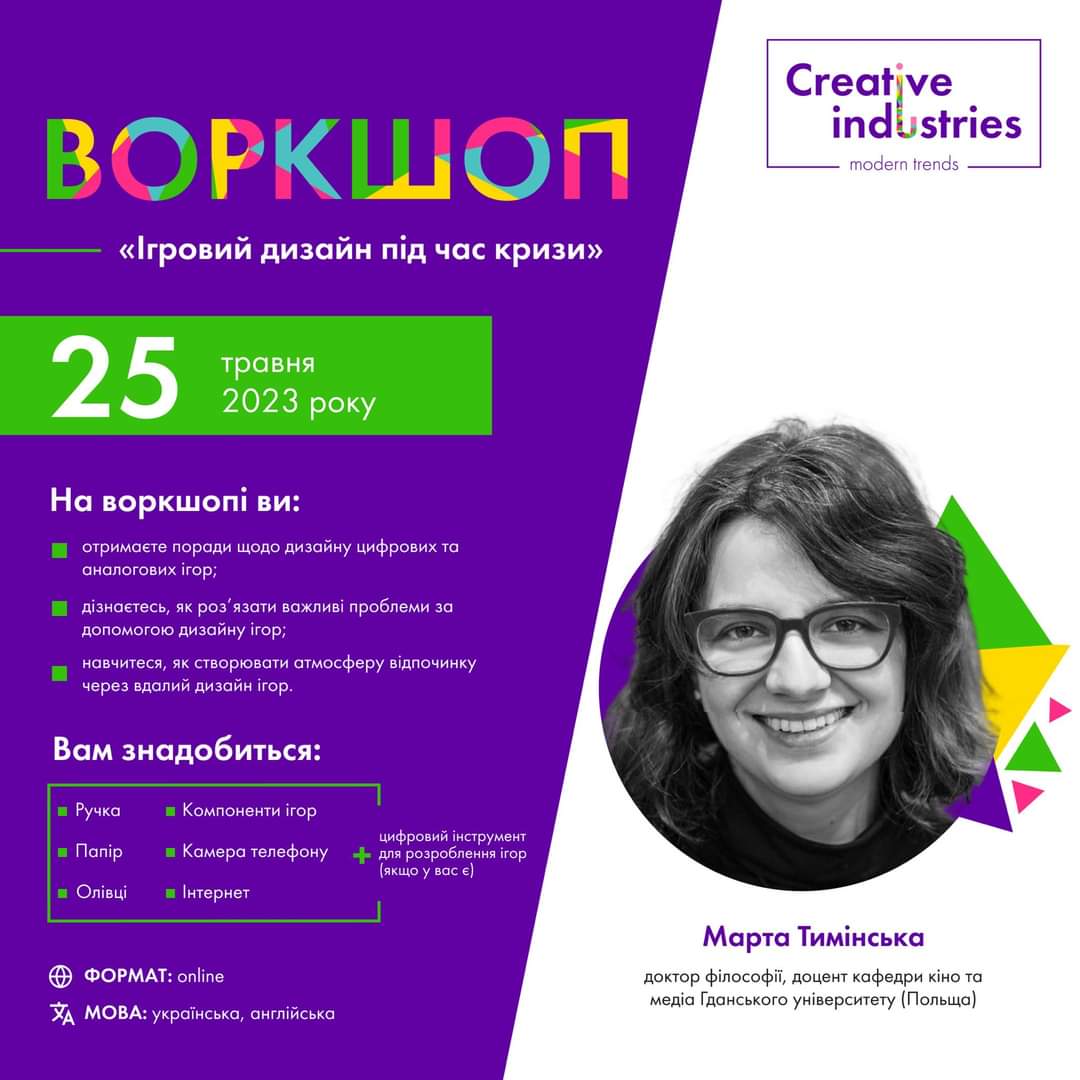 Кафедра міжнародної журналістики взяла активну участь в організації ІІ Міжнародної науково-практичної онлайн-конференції студентів, аспірантів, молодих учених та практиків «Креативні індустрії: сучасні тренди» (24–25 травня 2023 року). У складі оргкомітету працювали завідувач кафедри Віталій Терещук, доцент кафедри Олена Росінська та викладач кафедри Олександра Гондюл.Завдяки міжнародній співпраці і зв’язкам кафедри до участі в конференції було залучено професора Гданського університету (Польща) Марту Тимінську, котра зробила доповідь на пленарному засіданні, а також провела для учасників конференції цікавий воркшоп «Game Design in the Time of Crisis».