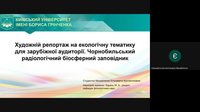Два виступи здобувачів були відзначені Екзаменаційною комісією як найкращі: Саєнка Микити Андрійовича (науковий керівник Бикова О.М.) та Ужвенко Ольги Валеріївни (науковий керівник Росінська О.А.).