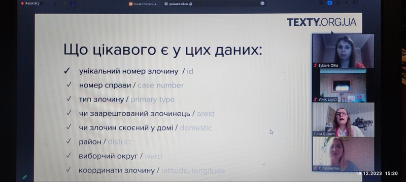 19 грудня 2023 року доцент кафедри міжнародної журналістики Ольга Бикова взяла участь в онлайн-семінарі Юлії Дукач (дата-аналітикині Texty.org.ua та соціологині) на тему «Дата-журналістика: які навички потрібні, щоб створювати історії на основі даних».