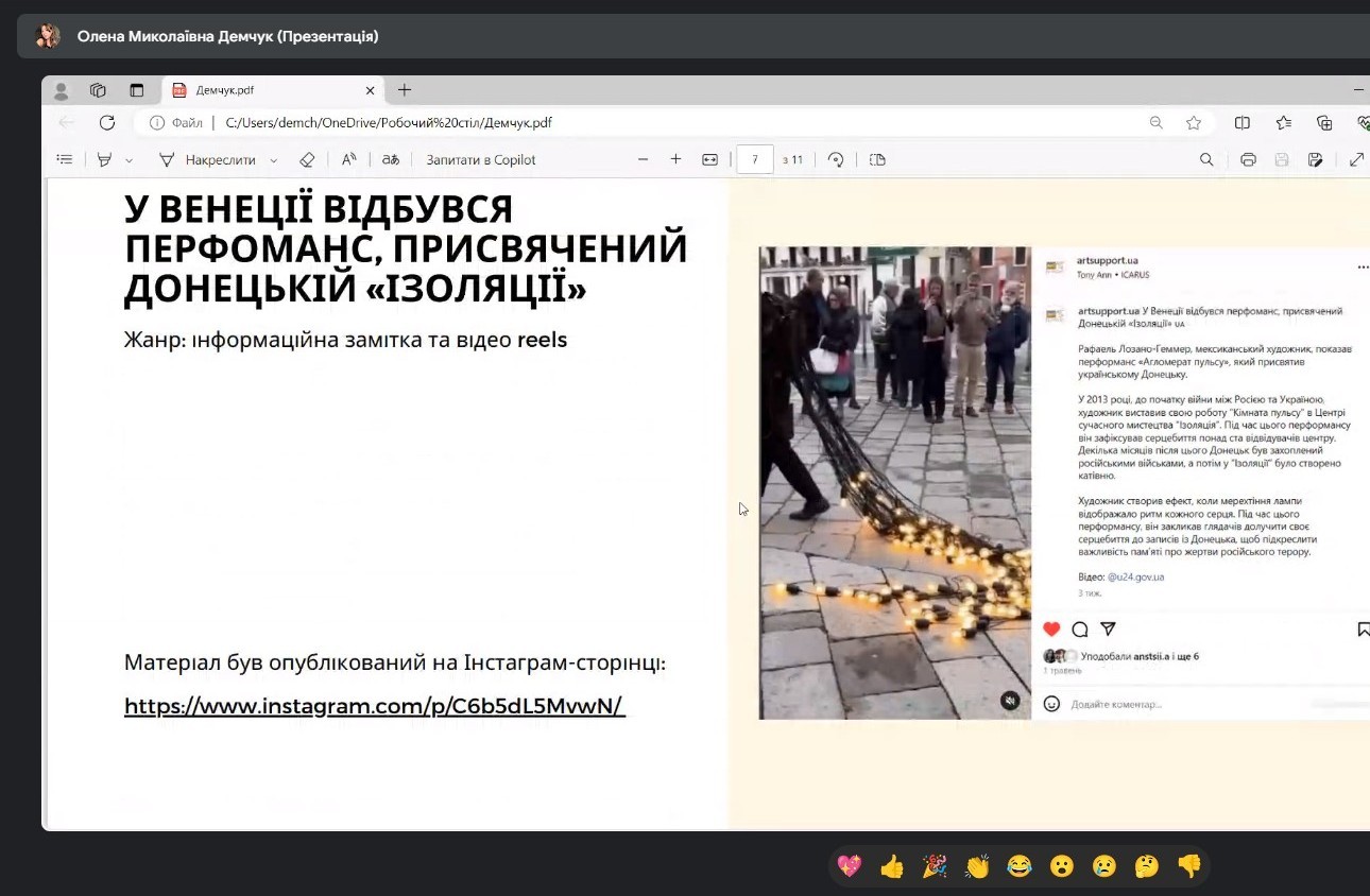 Під час конференції студенти прозвітували про форми роботи та завдання, які вони виконували під час практики в рамках підготовки своїх дипломних проєктів, обговорили компетентності та навички, які отримали при виконанні завдань, розповіли про свої враження від проходження практики.