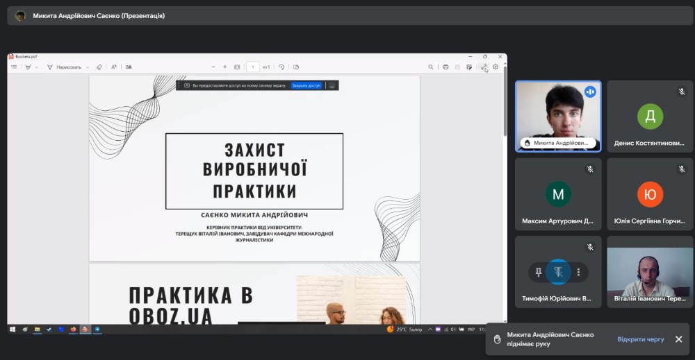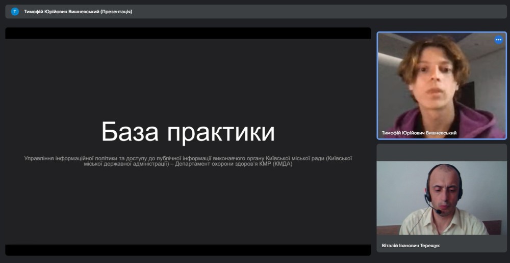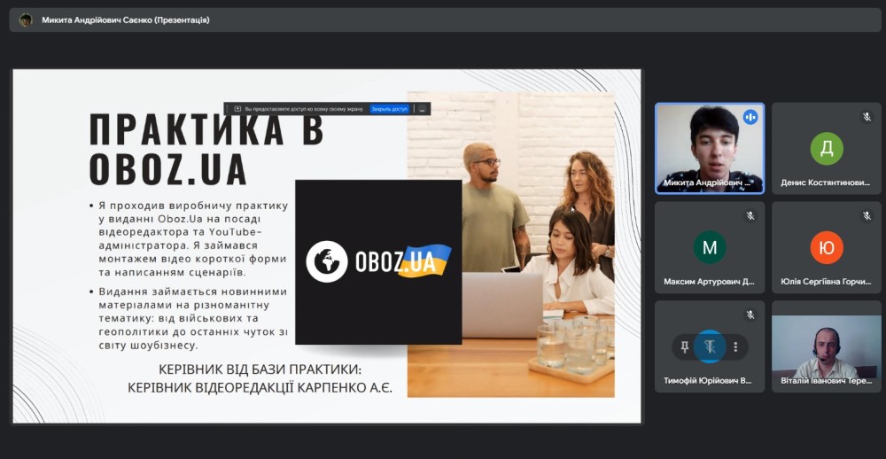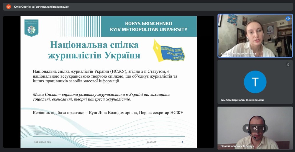 Конференція відбулася на платформі Google Meet під керівництвом завідувача кафедри міжнародної журналістики гаранта освітньої програми Віталія ТЕРЕЩУКА за участі керівників практики від університету.