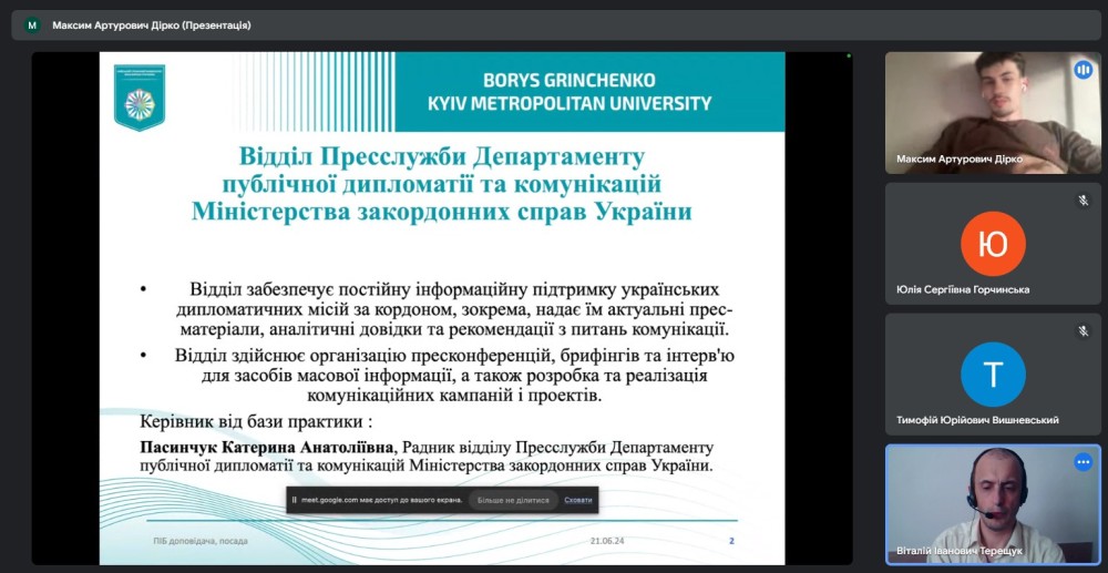 21 червня 2024 року відбулася звітна конференція з виробничої практики здобувачів 1 курсу магістерської освітньої програми «Міжнародні медіа та цифрові комунікації».