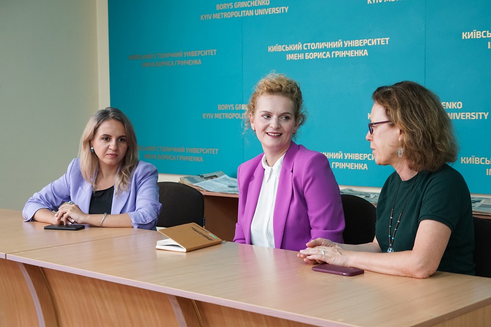 12 вересня 2024 року в Київському столичному університеті імені Бориса Грінченка відбулася зустріч студентів Факультету журналістики з Флутурою КУСАРІ — міжнародною консультанткою Ради Європи, старшою радницею з юридичних питань Європейського центру преси та медіа. На запрошення Національної спілки журналістів України вона відвідала наш університет та спільно з Лейлою Ждановою (міжнародною програмною менеджеркою) та Ліною Кущ (першим секретарем НСЖУ) провела зустріч зі здобувачами та викладачами факультету. Зокрема, у зустрічі взяли участь здобувачі освітньої програми «Міжнародні медіа та цифрові комунікації» та викладачі кафедри міжнародної журналістики.