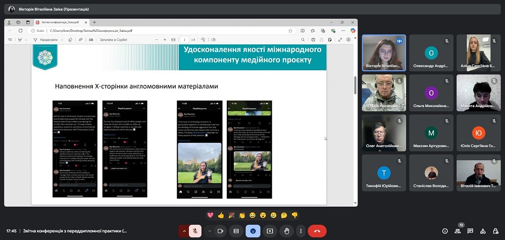 Звітна конференція відбулася на платформі Google Meet за модерування завідувача кафедри міжнародної журналістики, гаранта освітньої програми Віталія ТЕРЕЩУКА.