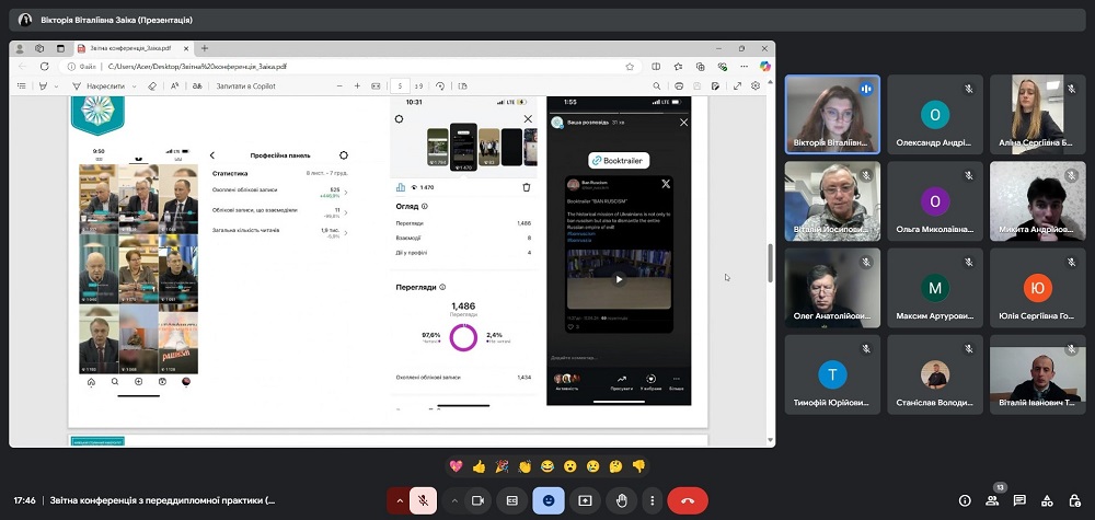 Під час конференції студенти прозвітували про форми роботи та завдання, які вони виконували під час практики в рамках підготовки своїх кваліфікаційних робіт, обговорили компетентності та навички, які отримали при виконанні завдань, розповіли про свої враження від проходження практики.