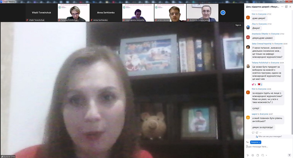Під час заходу гарант освітньої програми «Міжнародна журналістика» Ольга Бикова детально розповіла про специфіку програми та її переваги. Вона ознайомила абітурієнтів із базами практики, серед яких Національна спілка журналістів, Українське національне інформаційне агентство «Укрінформ», Державна установа «Український інститут» та комунальні медіа Києва. Тему грантових можливостей розкрила студентка третього курсу цієї програми Анна Сергієнко, яка поділилася своїм досвідом навчання за програмою академічної мобільності Erasmus+ у Брюссельській школі журналістики та комунікацій. Вона розповіла, як виграти грант, поділилася враженнями та дала корисні поради майбутнім студентам. А студентка першого курсу Єлизавета Доброленська поділилися власними напрацюваннями, розповіли про співпрацю з викладачами, участь у волонтерських ініціативах та студентських проєктах.