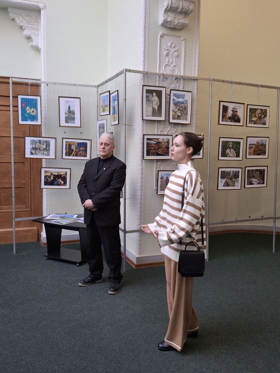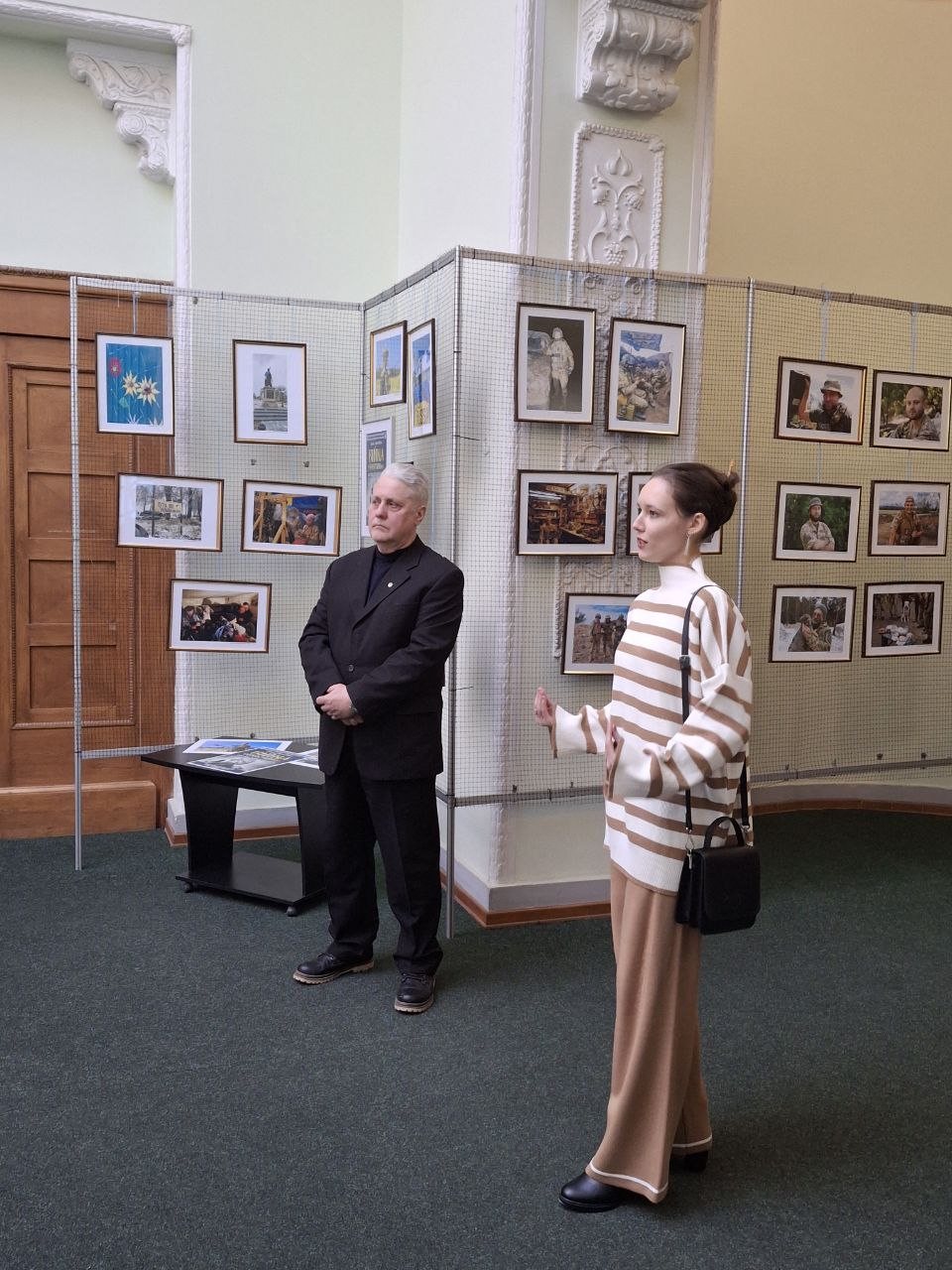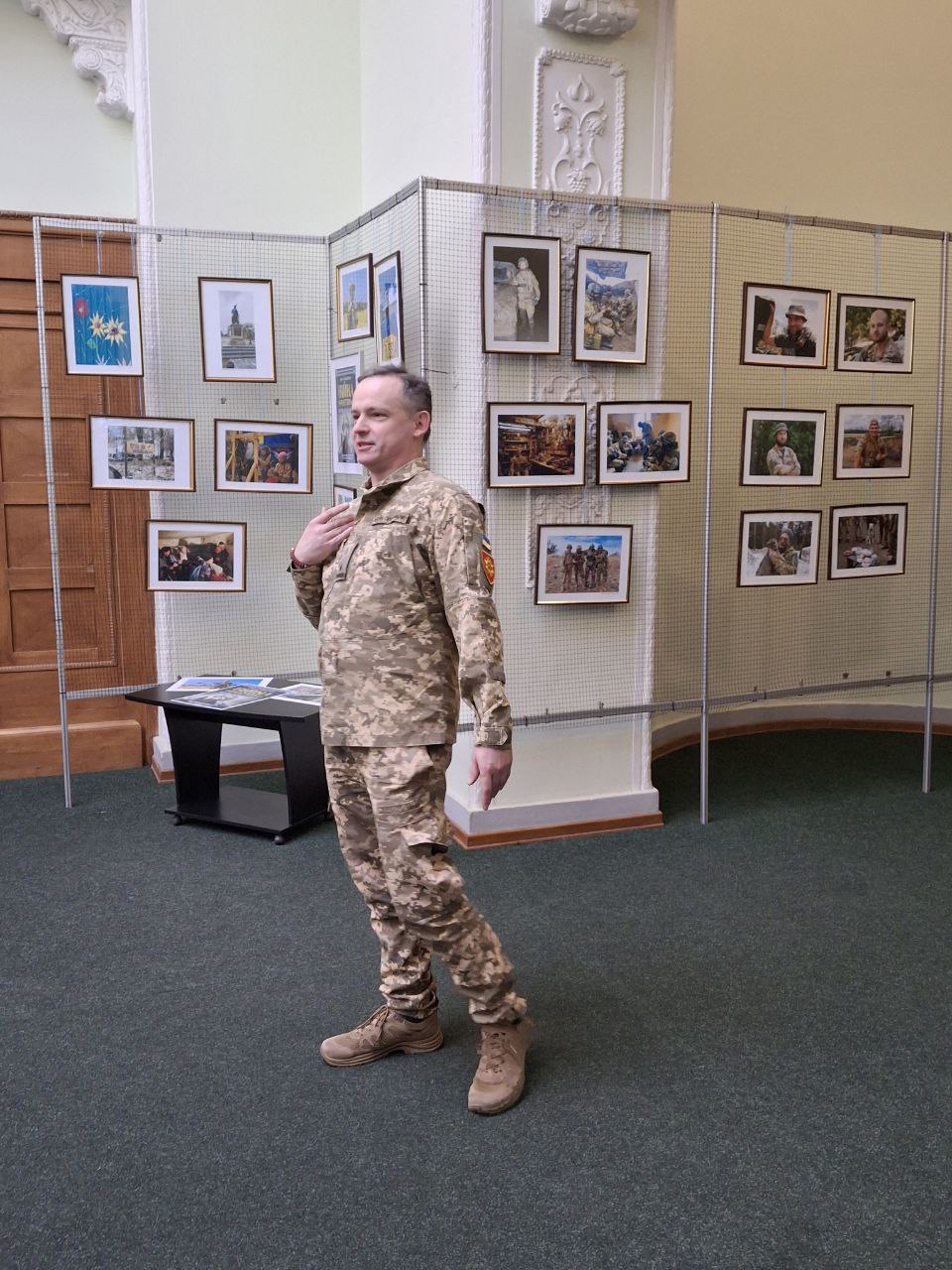 Серед авторів світлин — як професійні фотографи, так і військові, що зафіксували фронтову реальність. Офіцер ЗСУ Віктор Тімохін, один із учасників виставки, поділився досвідом і закликав молодь вірити у свої сили та підтримувати українське військо.