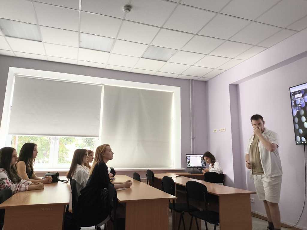 Поспілкуватися з майбутніми журналістами-міжнародниками завітали випускники освітньої програми «Міжнародна журналістка» Вікторія КРАВЧУК, Максим КРАСНОЩОКОВ, Каріна КІШУК. Зустріч проходила у дружній атмосфері, яку не зіпсувала навіть вимушена перерва внаслідок оголошеної повітряної тривоги. Першокурсники задавали питання, цікавилися різними аспектами роботи сучасного українського журналіста. Кафедра міжнародної журналістики щиро дякує Вікторії, Максиму та Карині!